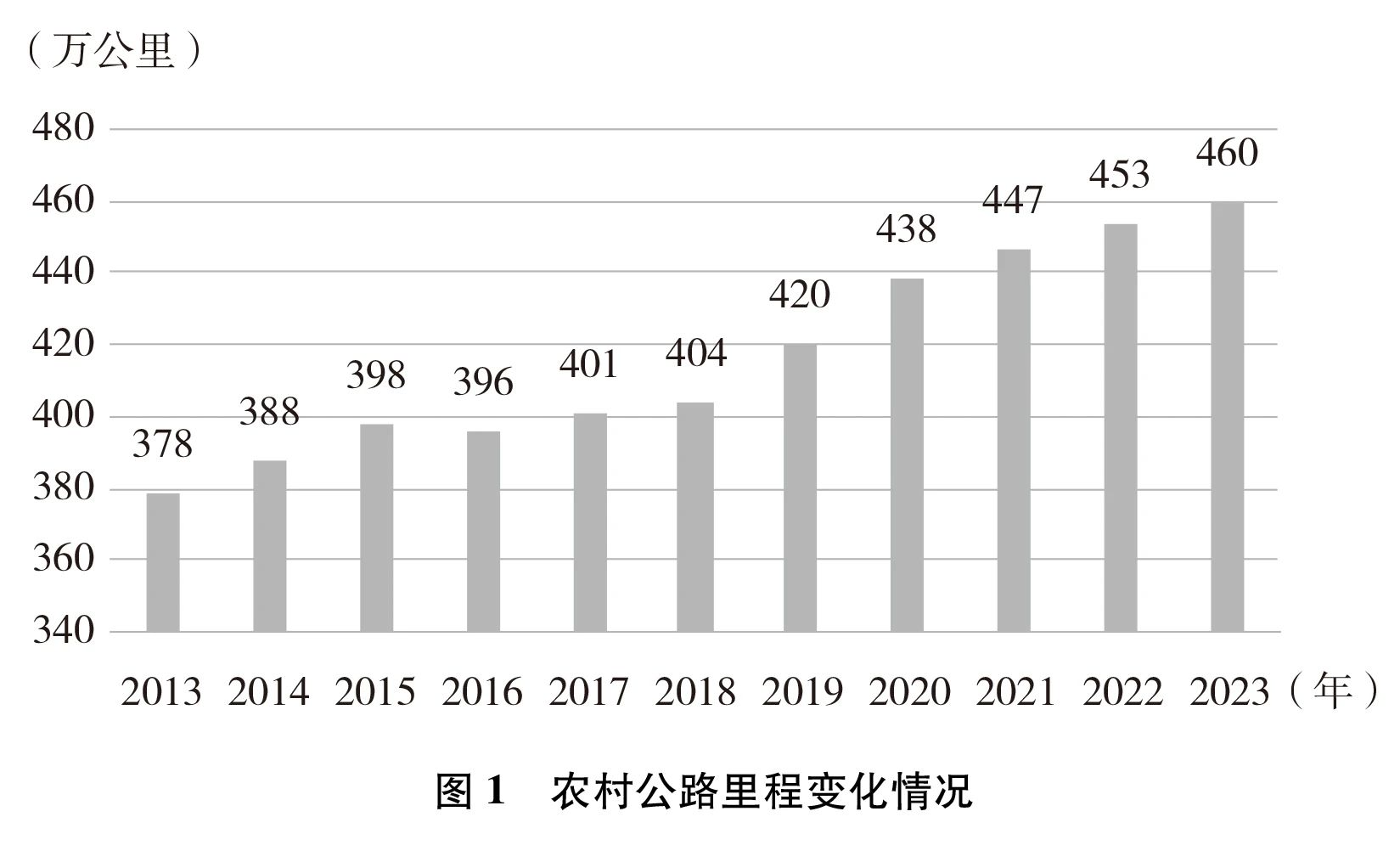 里程规模显著增长。十年来,新改建农村公路250余万公里。截至2023年底,农村公路总里程达到460万公里,长度可绕地球赤道115圈,十年间增长21.7%。县道、乡道、村道里程分别达到70万公里、124万公里、266万公里。农村公路桥梁达到53万座、隧道2222座。形成了一张县道沟通城乡、乡道往来交织、村道抵田连户的农村交通基础设施网络。