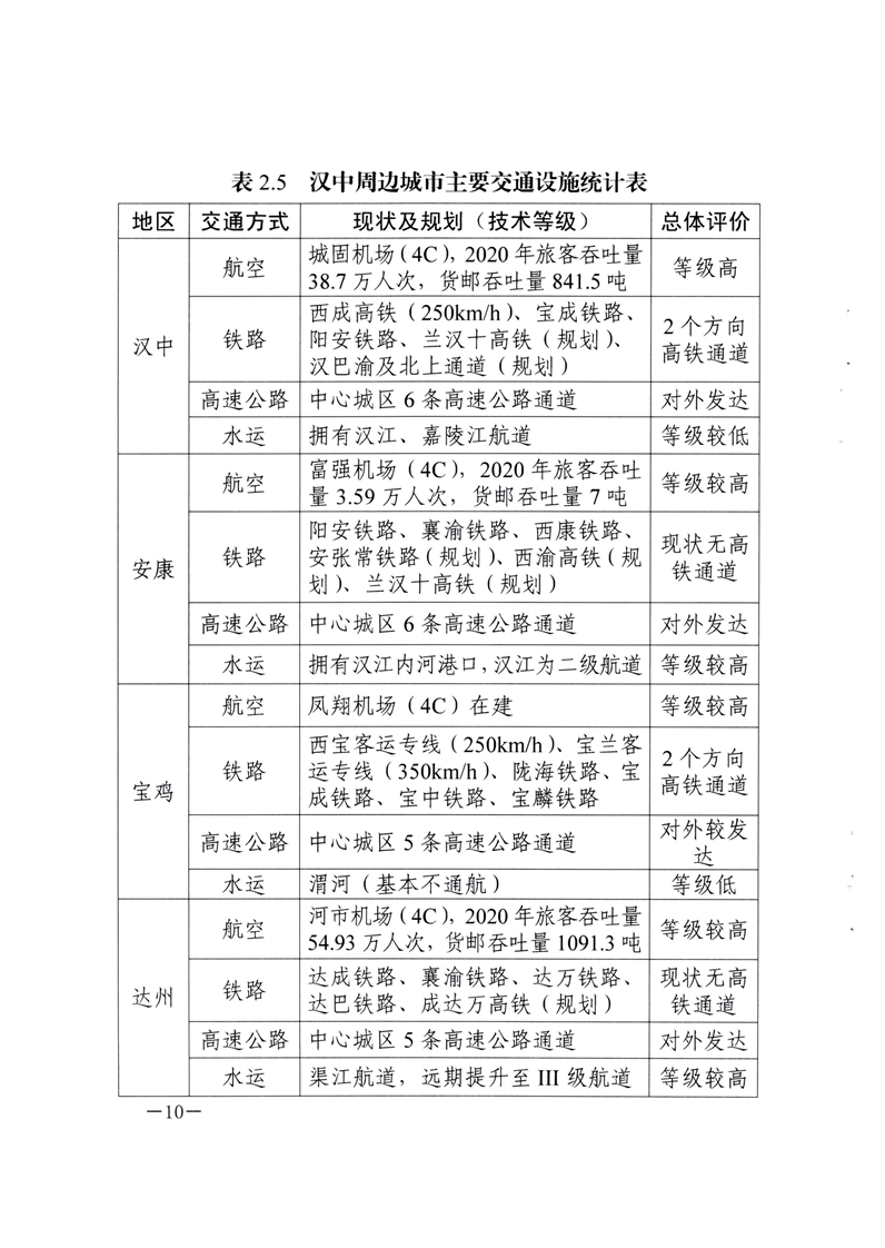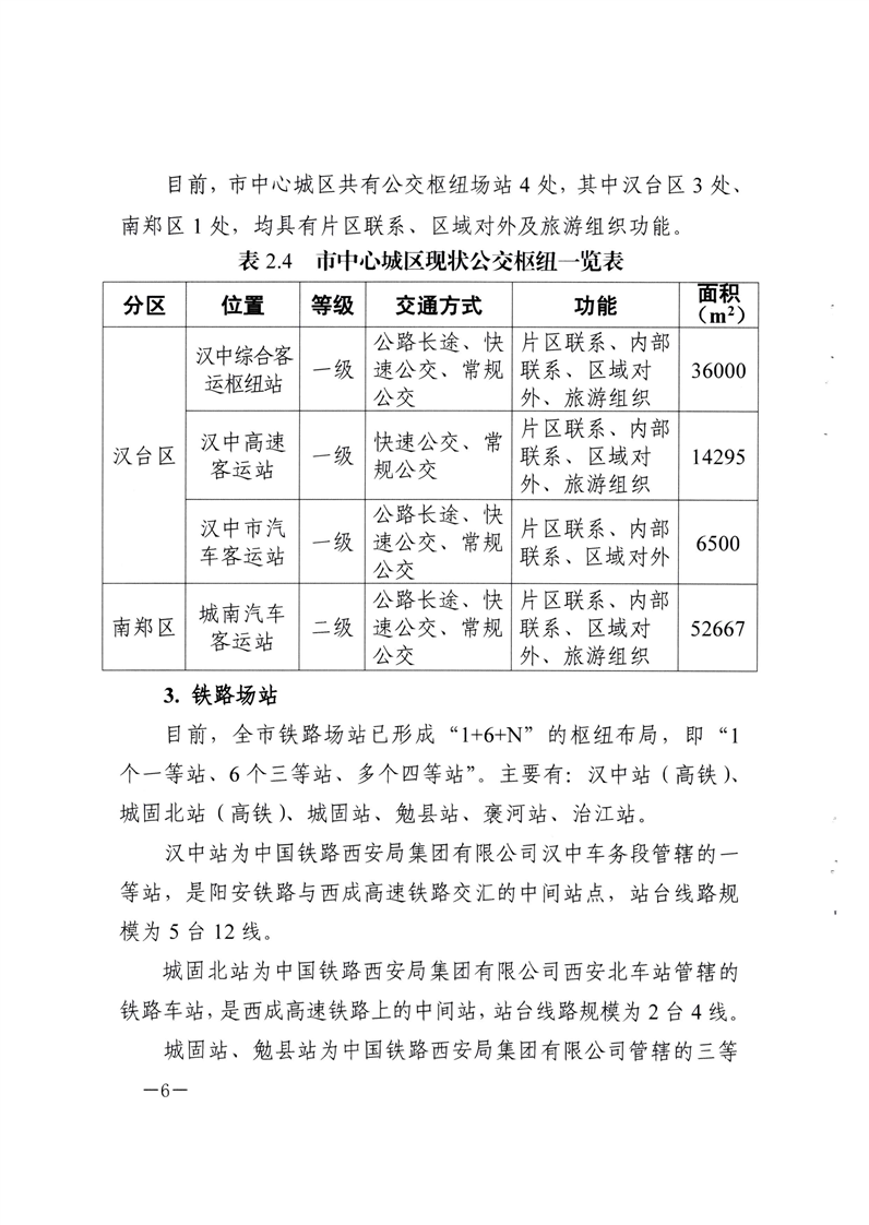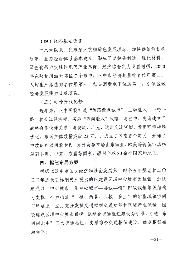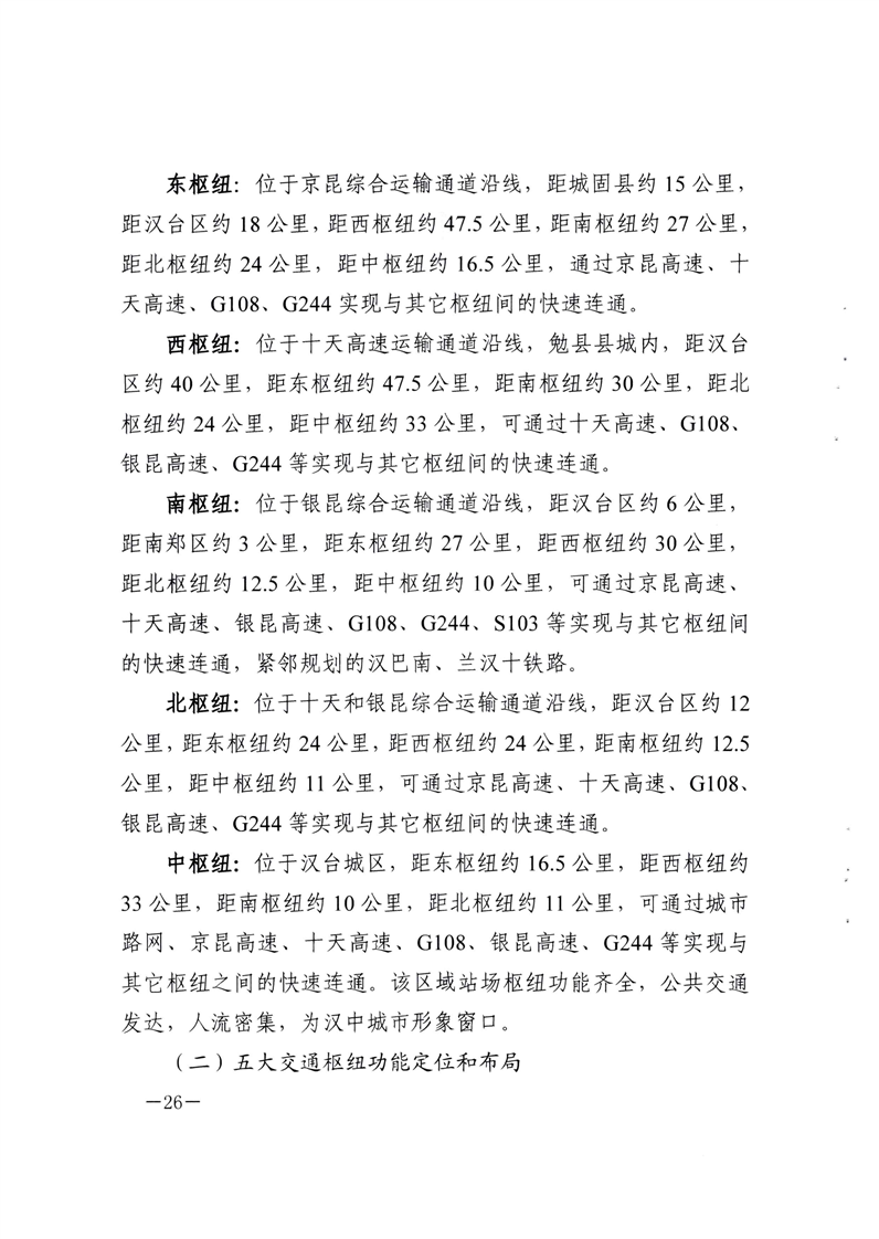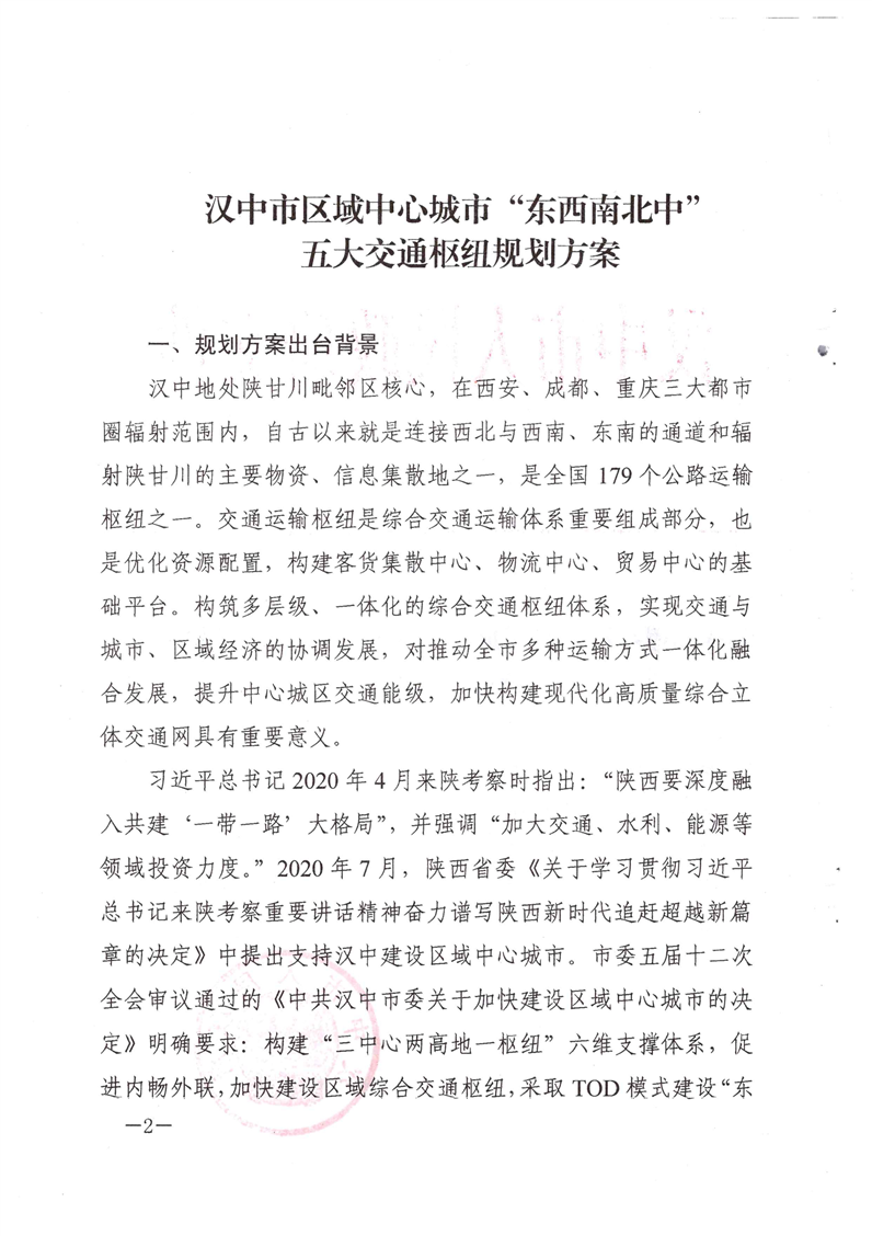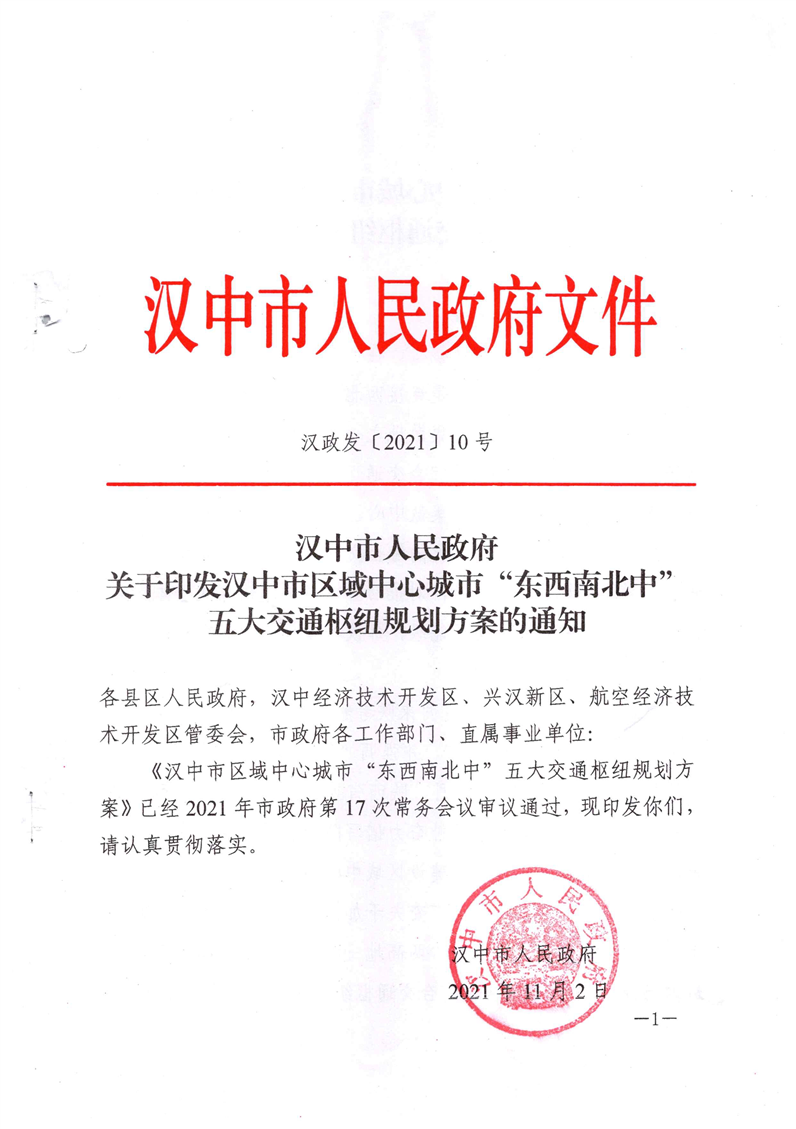 关于印发汉中市区域中心城市“东西南北中”五大交通枢纽规划方案的通知