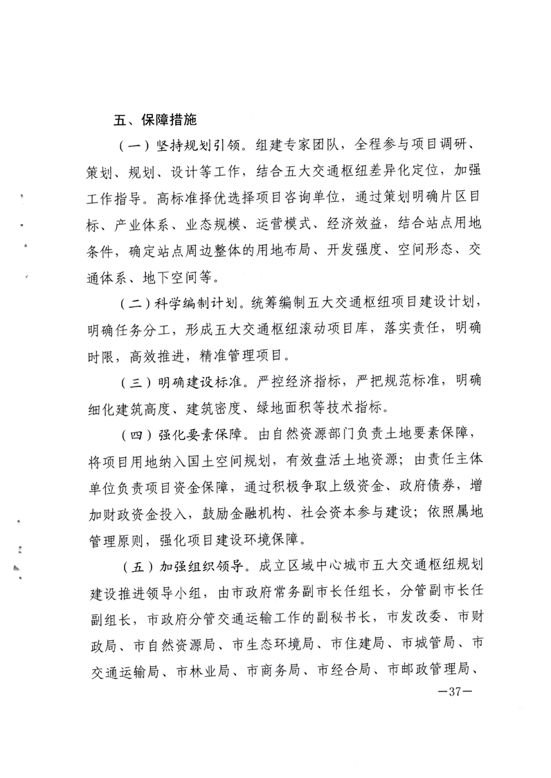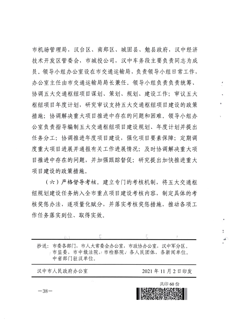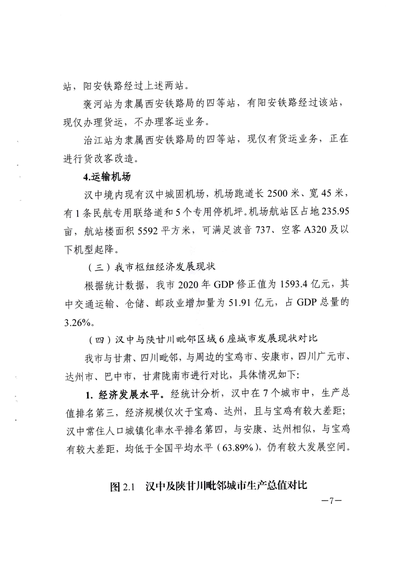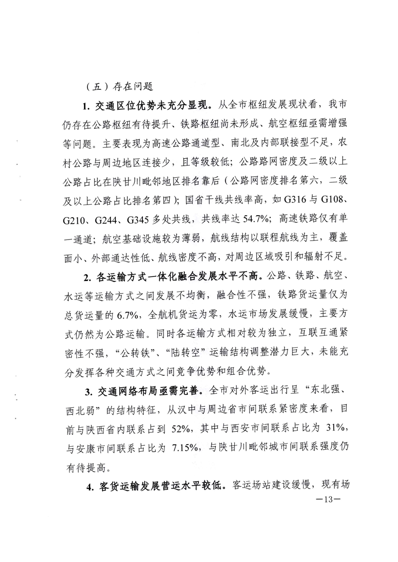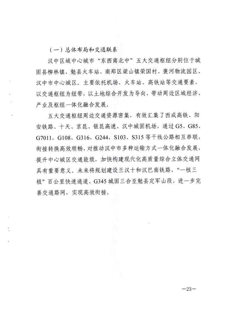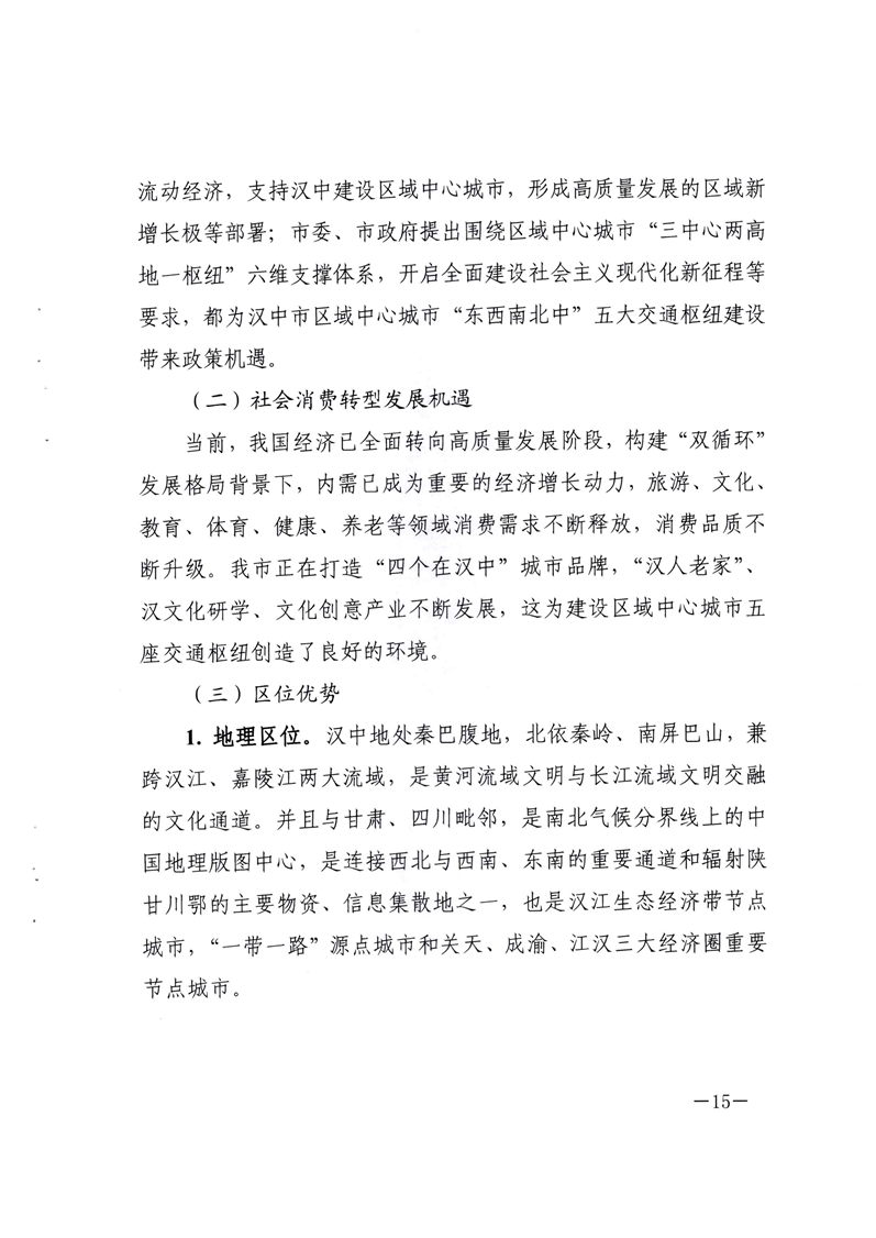 关于印发汉中市区域中心城市“东西南北中”五大交通枢纽规划方案的通知
