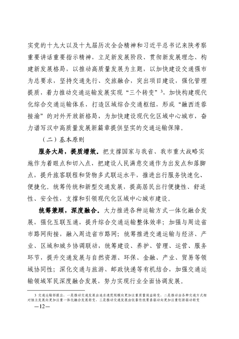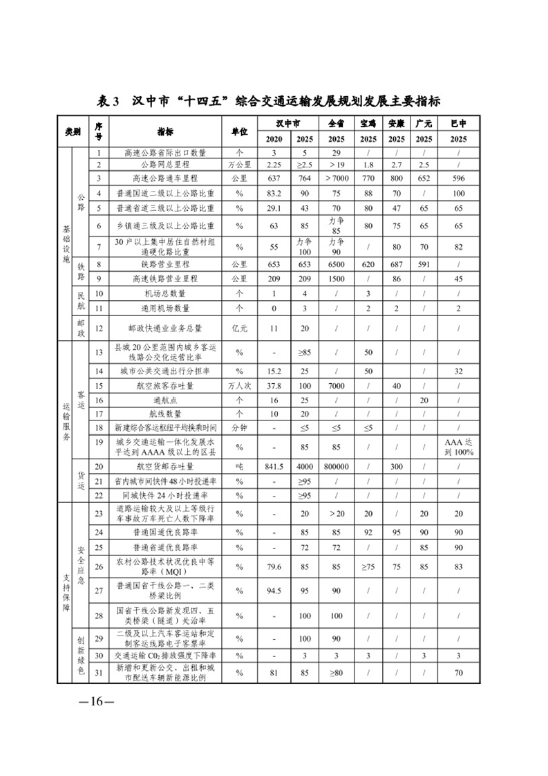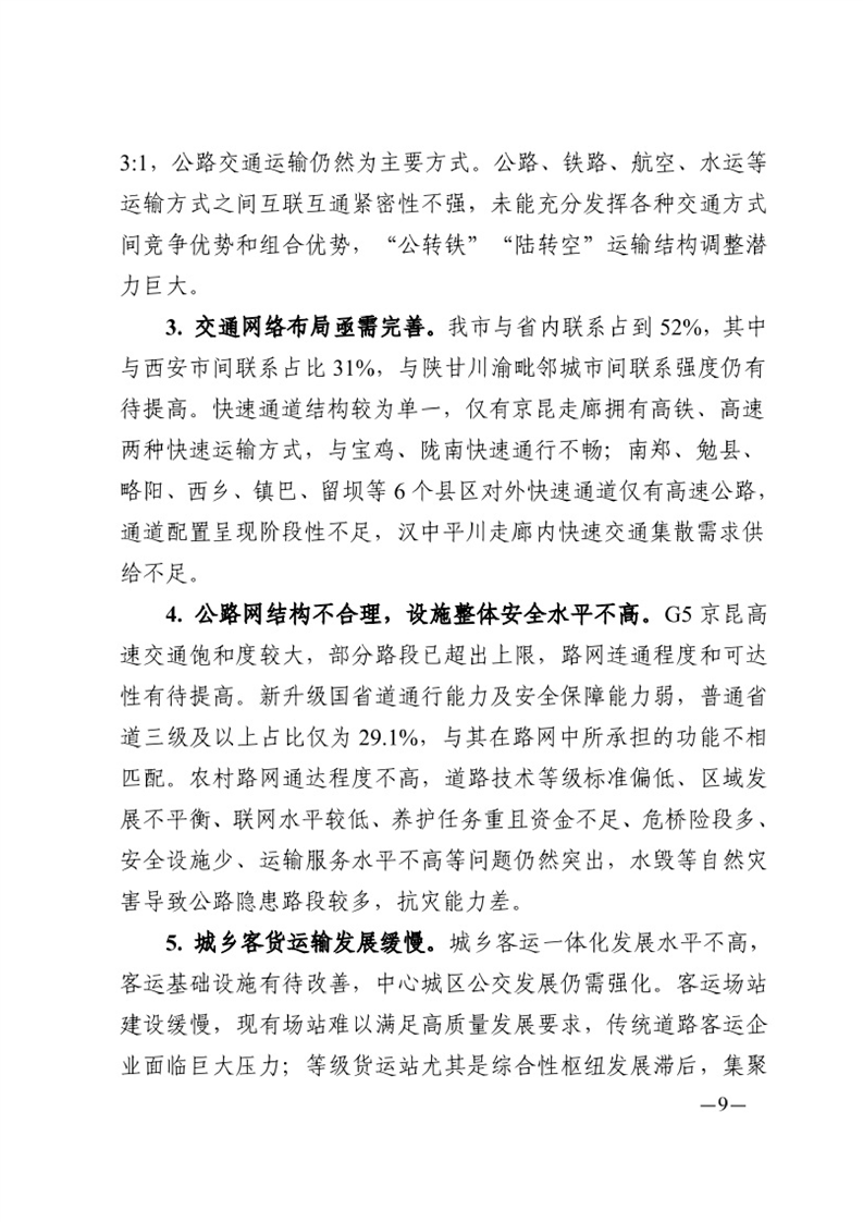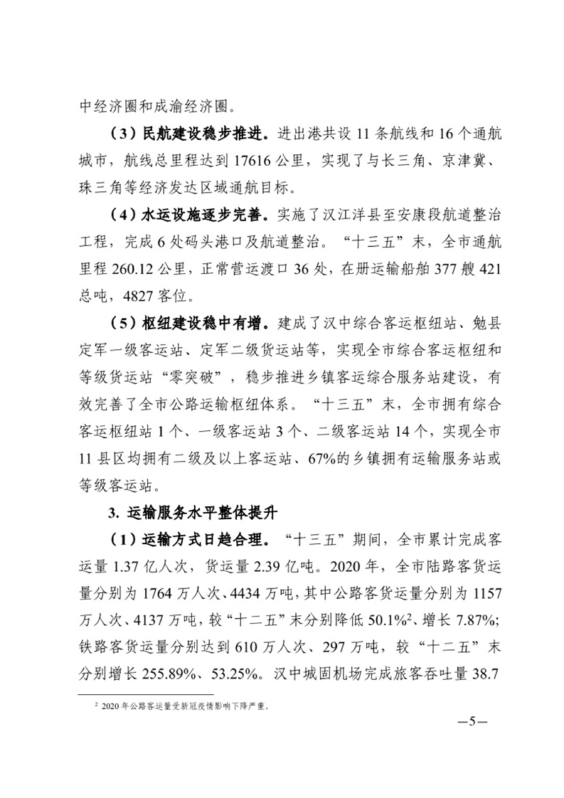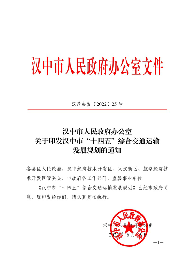 关于印发汉中市“十四五”综合交通运输发展规划的通知