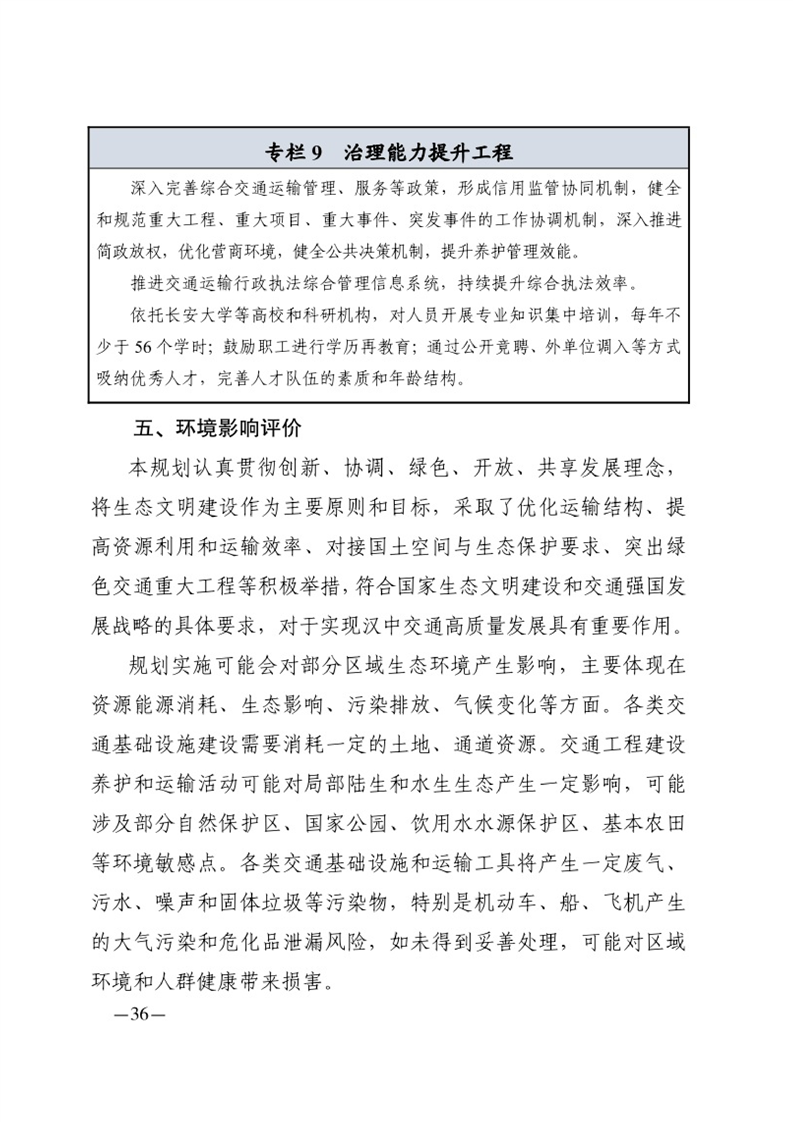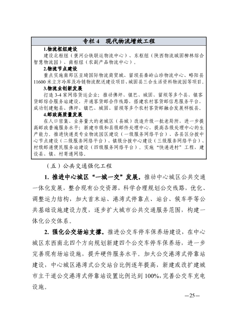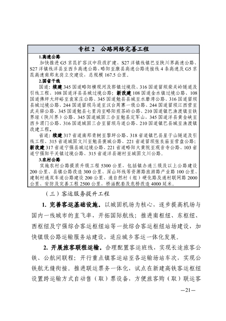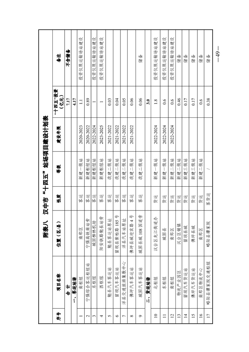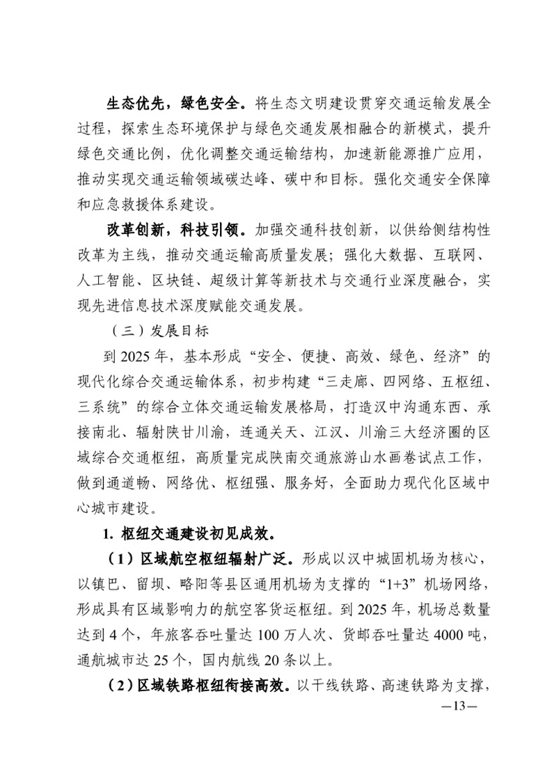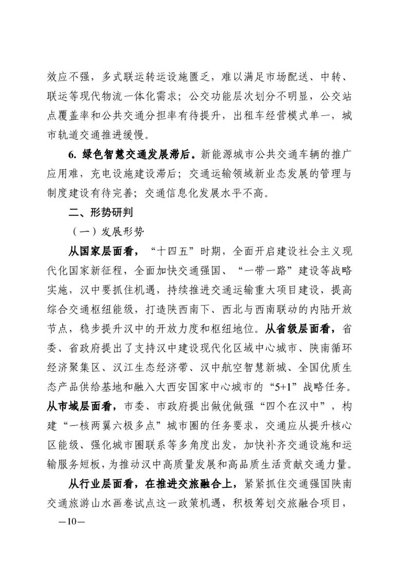 关于印发汉中市“十四五”综合交通运输发展规划的通知