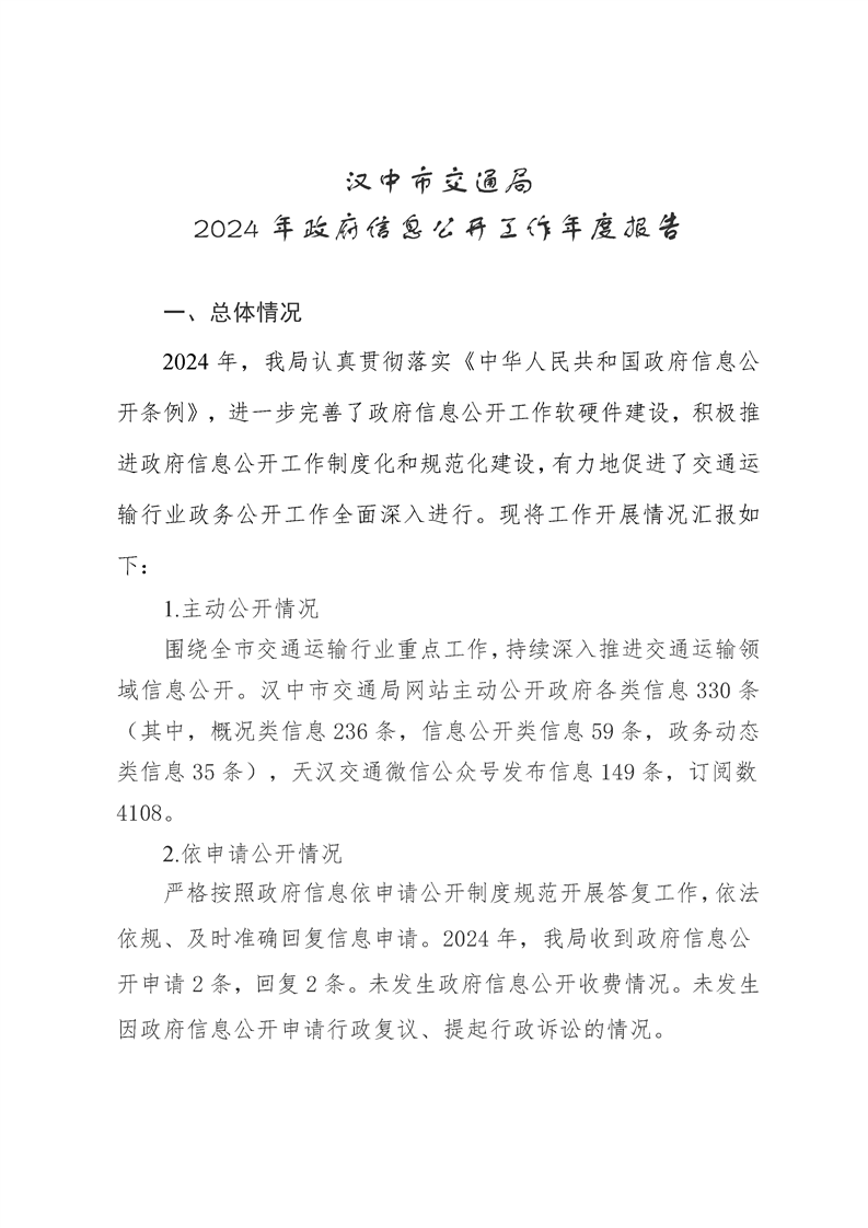 汉中市交通局2024年政府信息公开工作年度报告