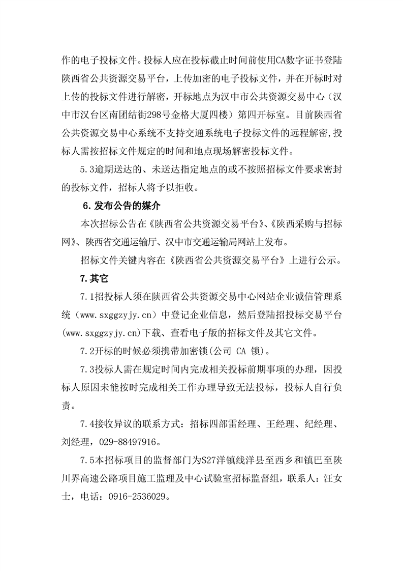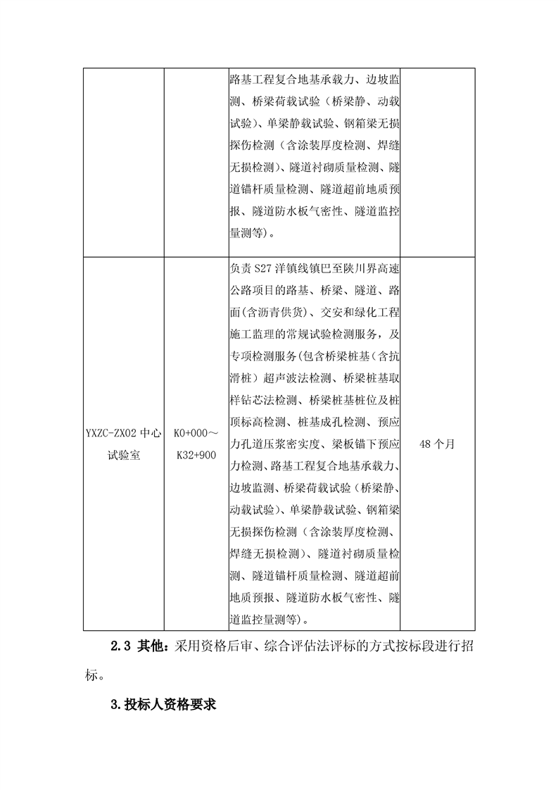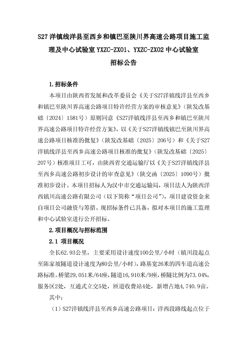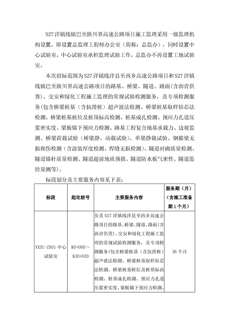 s27洋镇线洋县至西乡和镇巴至陕川界高速公路项目施工监理及中心试验室yxzc-zx01、yxzc-zx02中心试验室招标公告