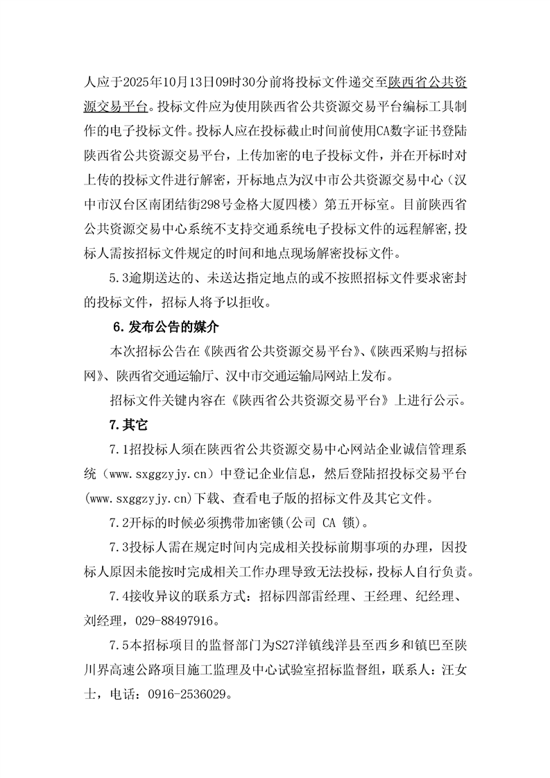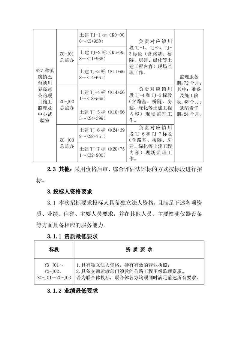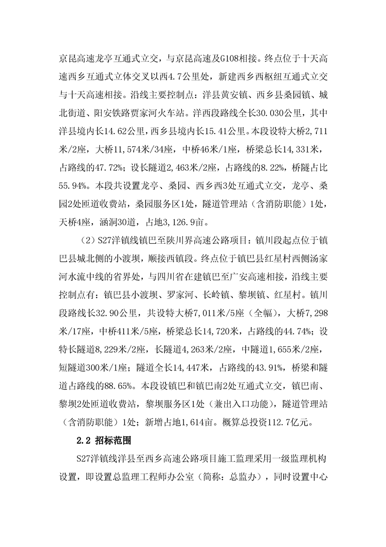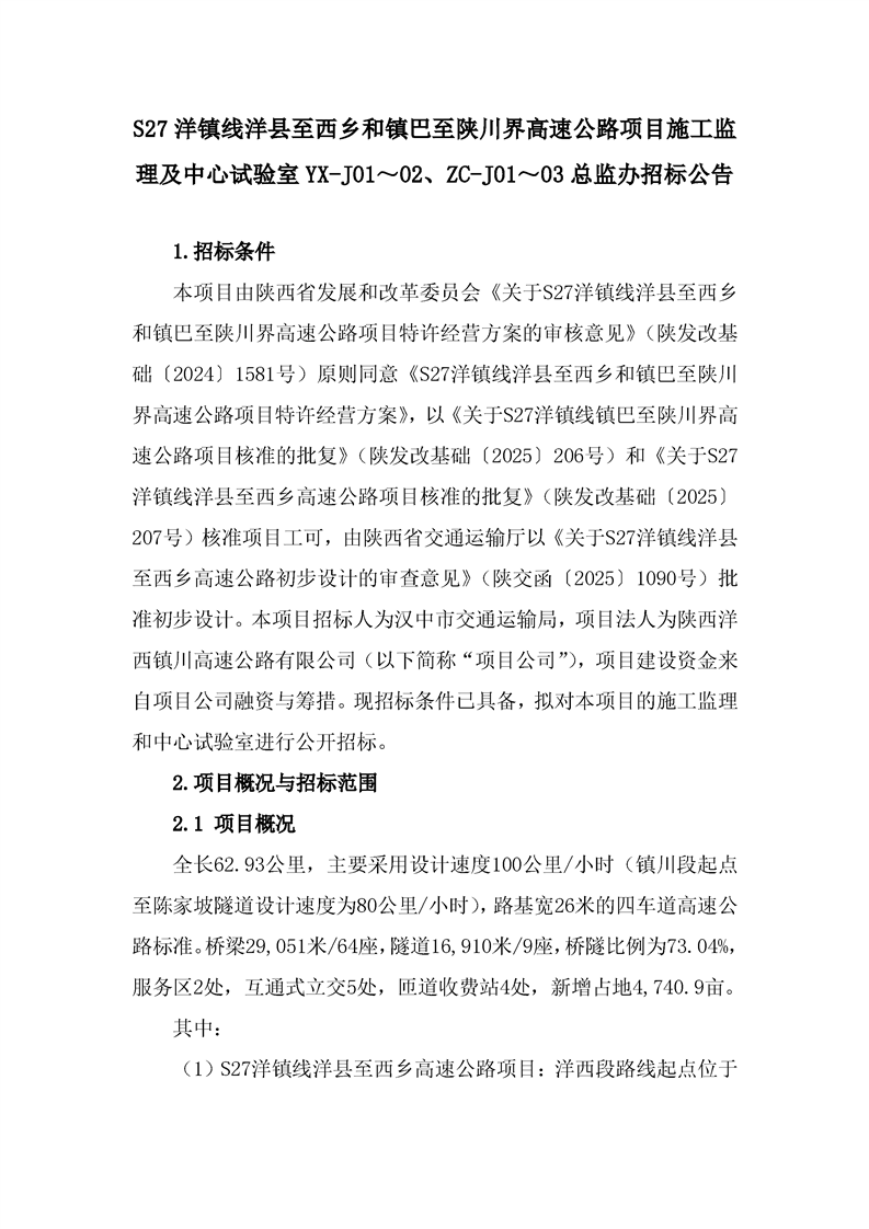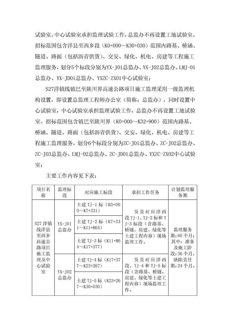 s27洋镇线洋县至西乡和镇巴至陕川界高速公路项目施工监理及中心试验室yx-j01~02、zc-j01~03总监办招标公告