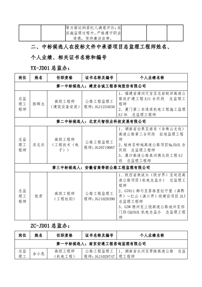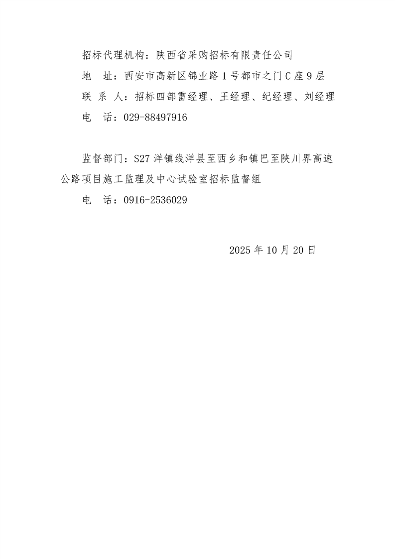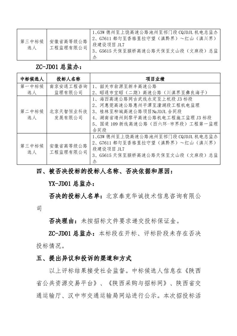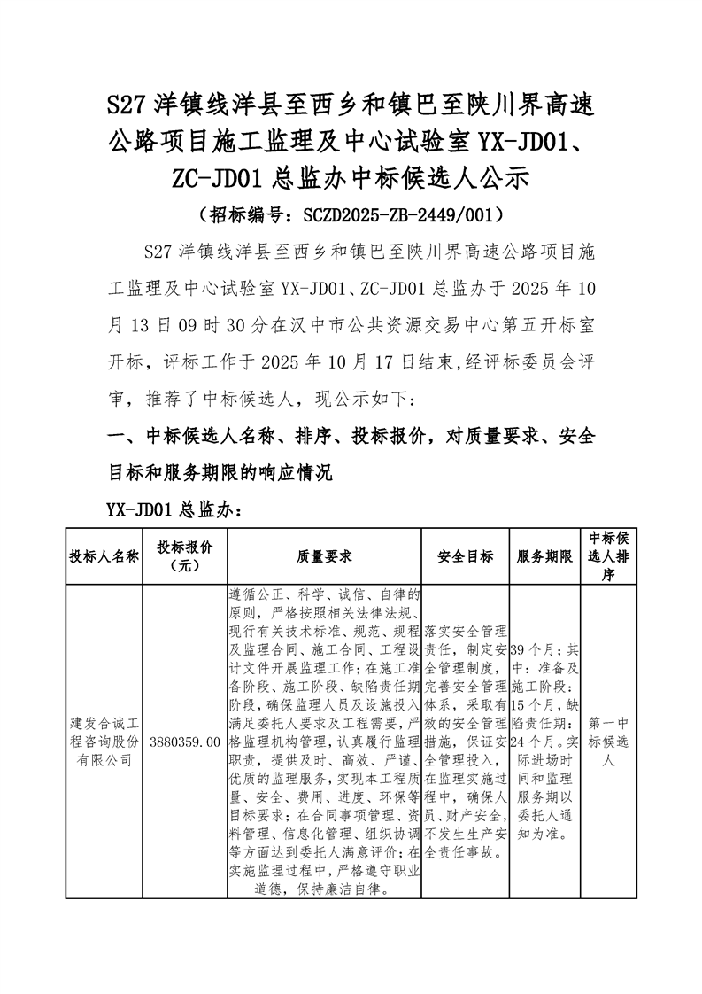 s27洋镇线洋县至西乡和镇巴至陕川界高速公路项目施工监理及中心试验室yx-jd01、zc-jd01总监办中标候选人公示
