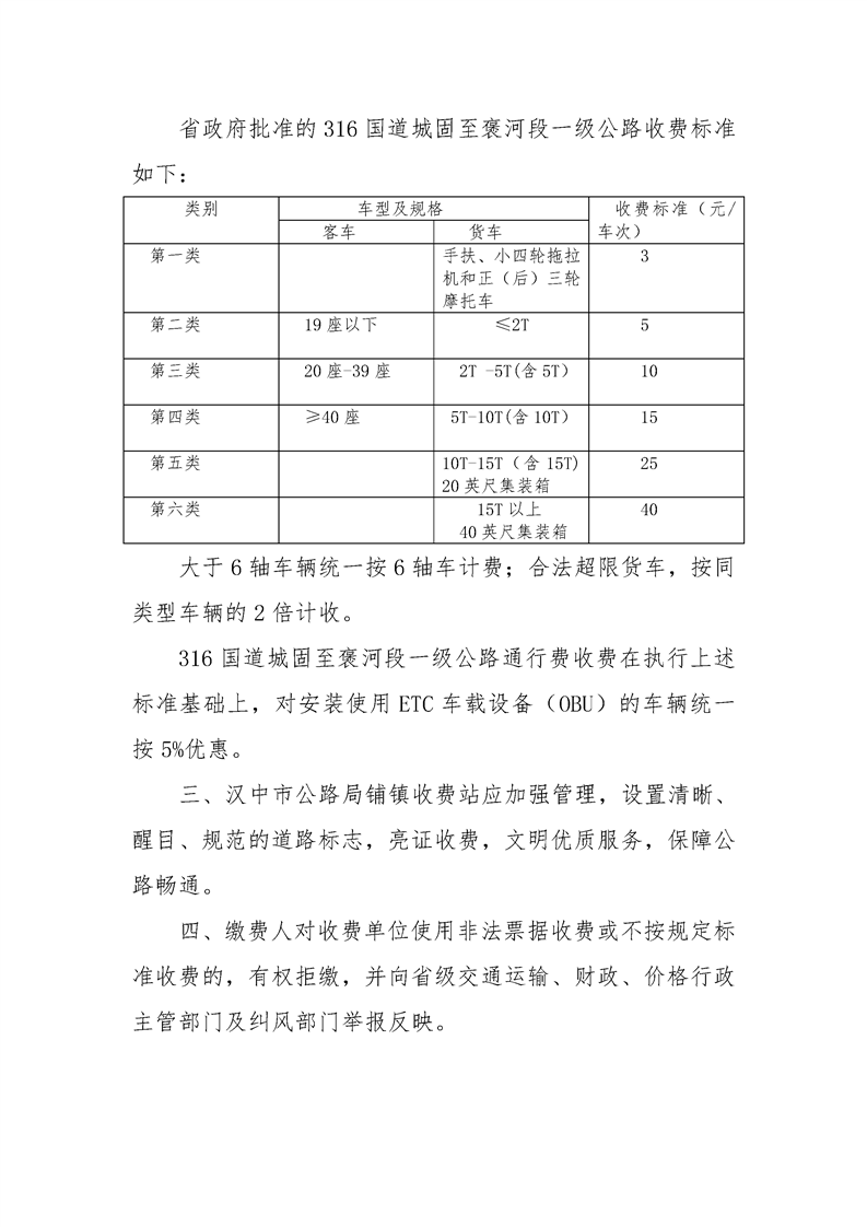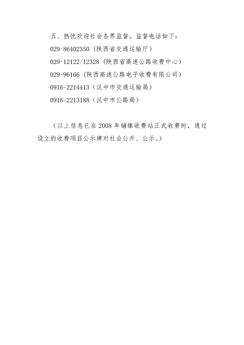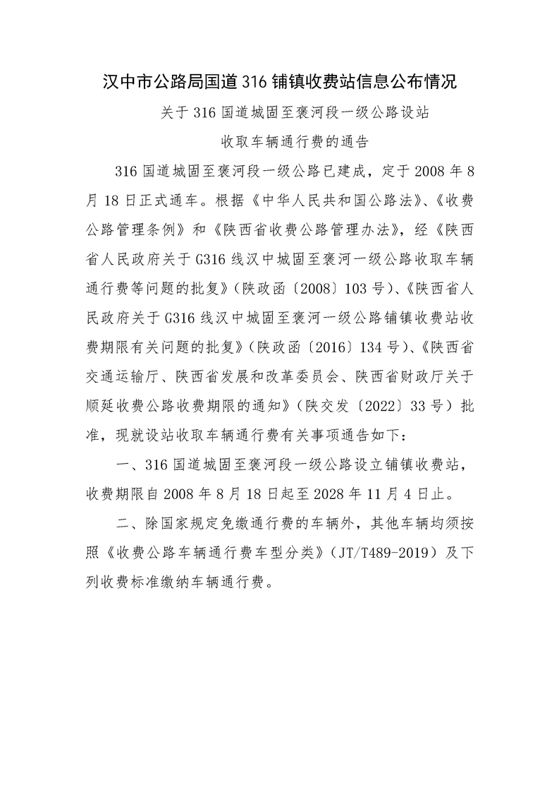 汉中市公路局国道316铺镇收费站基本情况