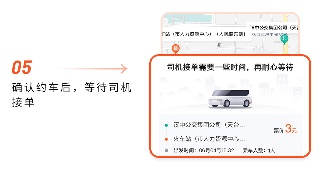 1随叫随“行”:想坐车?提前预约下单!告别“望眼欲穿”的等待,出行时间由您掌控。