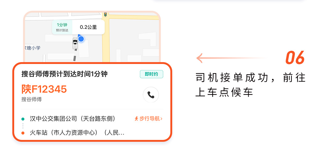 5全程通过手机操作:预约、下单、实时查看车辆位置、预估到达时间,一切尽在掌握!