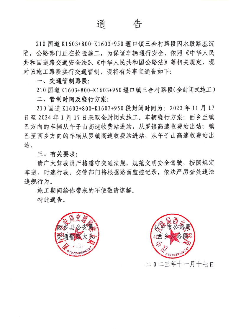 g210西乡堰口镇三合村段封闭施工-k8凯发