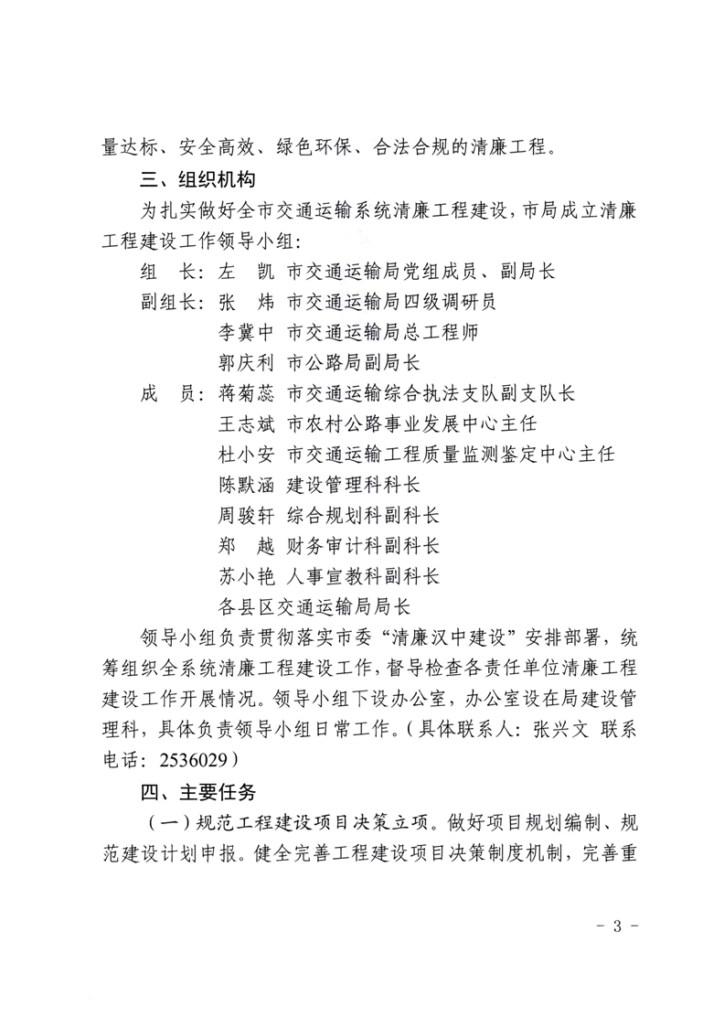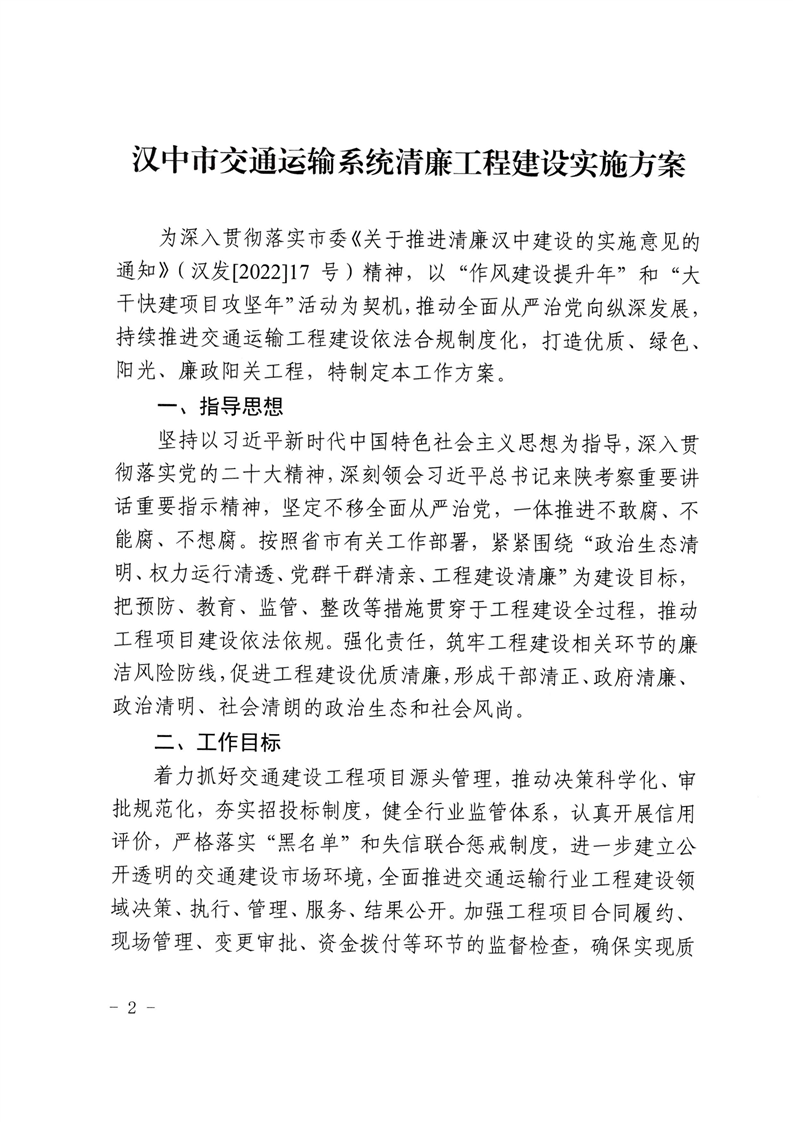 汉中市交通运输局关于印发《汉中市交通运输系统清廉工程建设实施方案》的通知-k8凯发