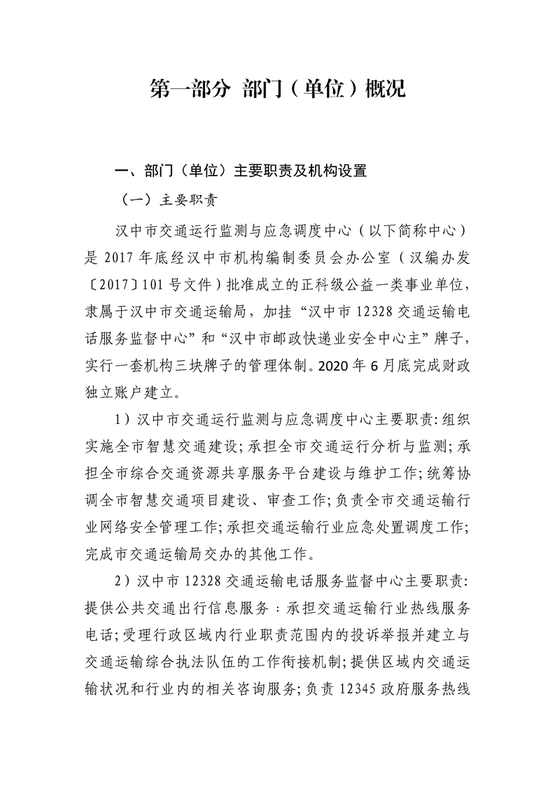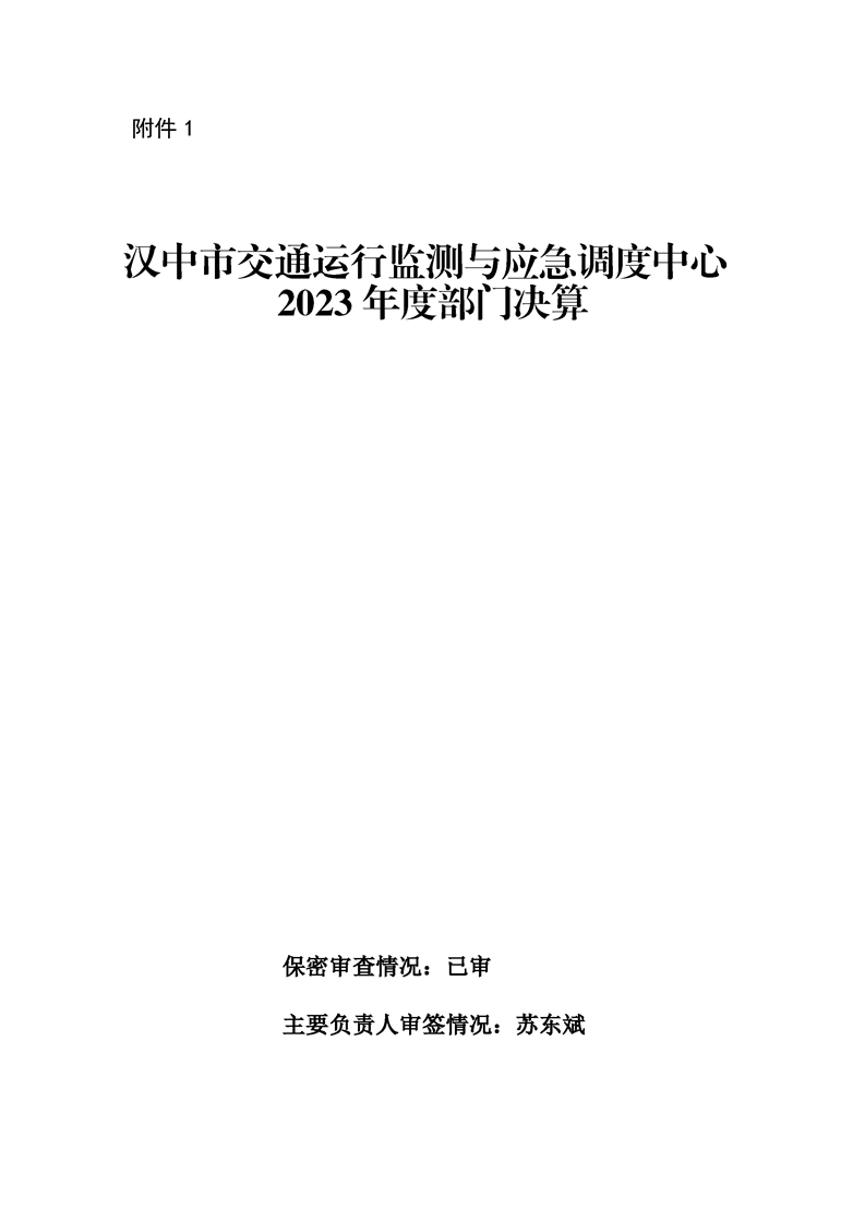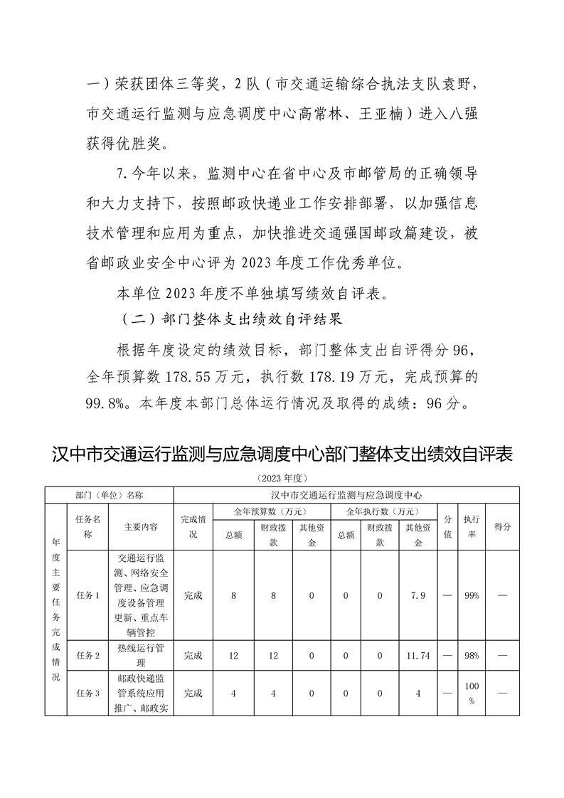 汉中市交通运行监测与应急调度中心2023年部门决算公开说明