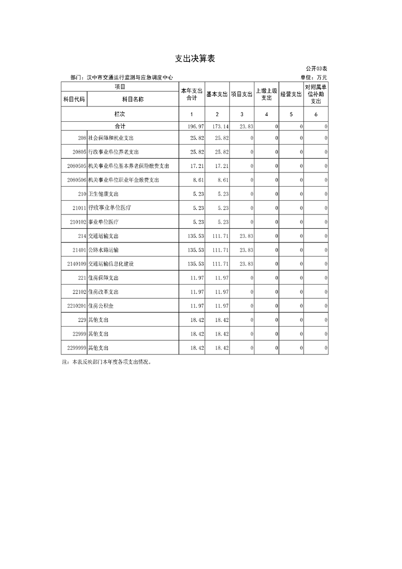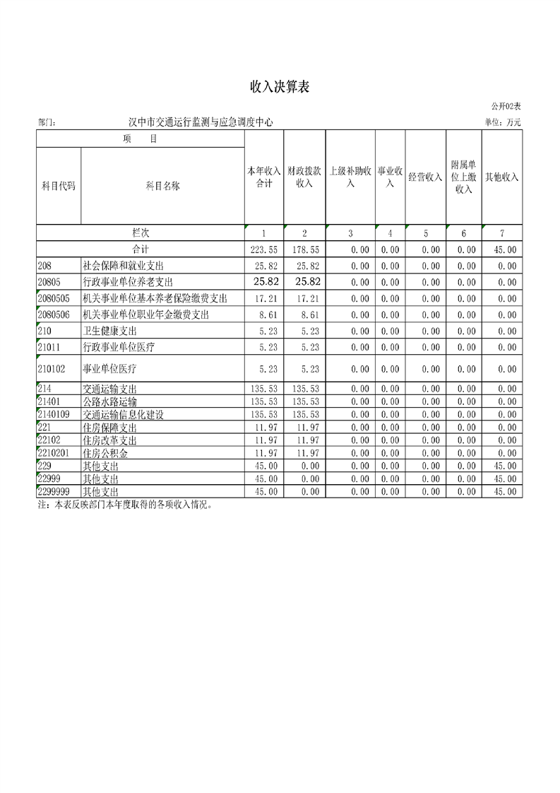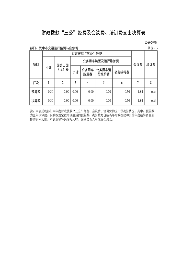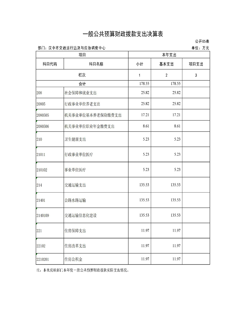 汉中市交通运行监测与应急调度中心2023年部门决算公开说明