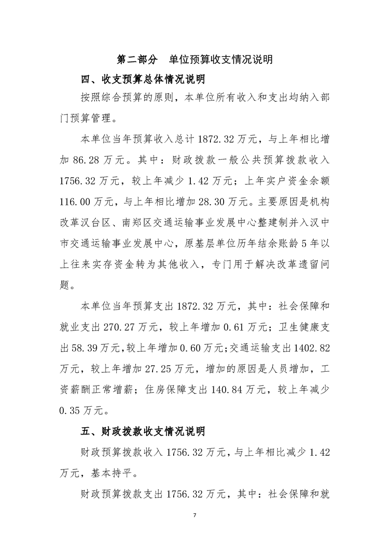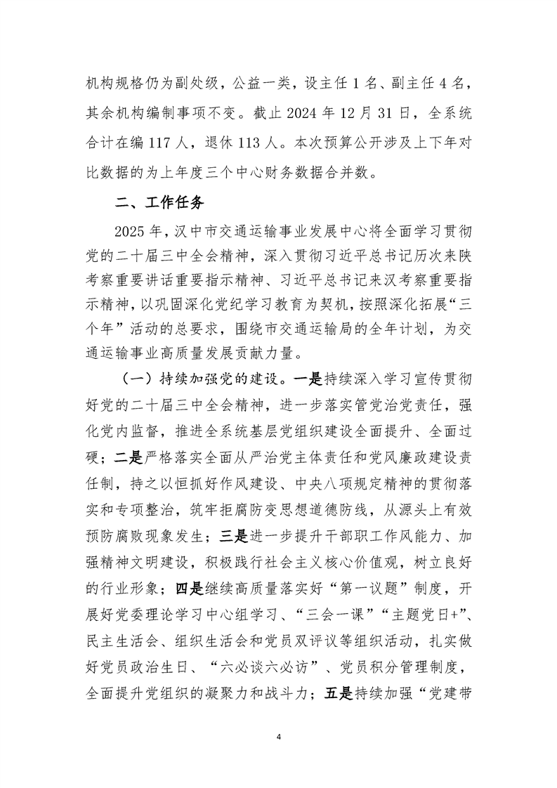 汉中市交通运输事业发展中心2025年单位预算公开说明