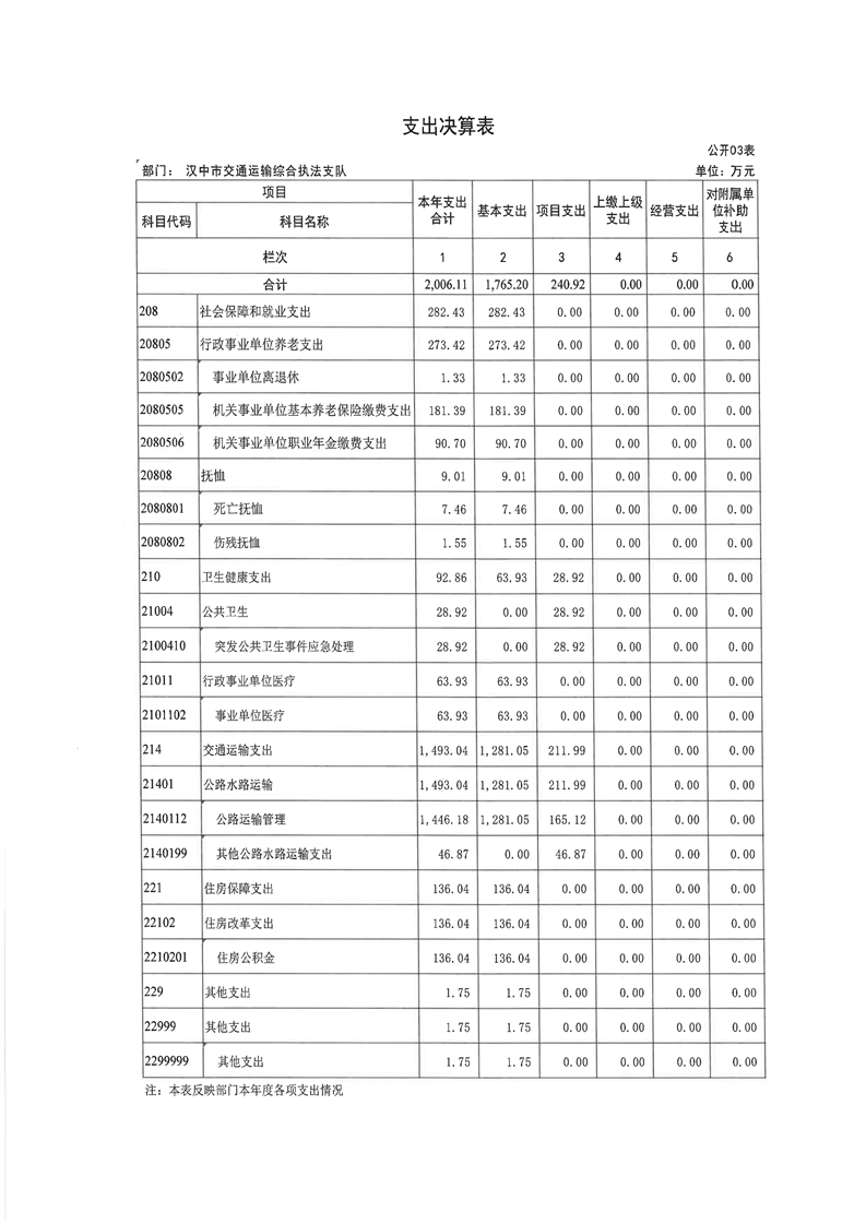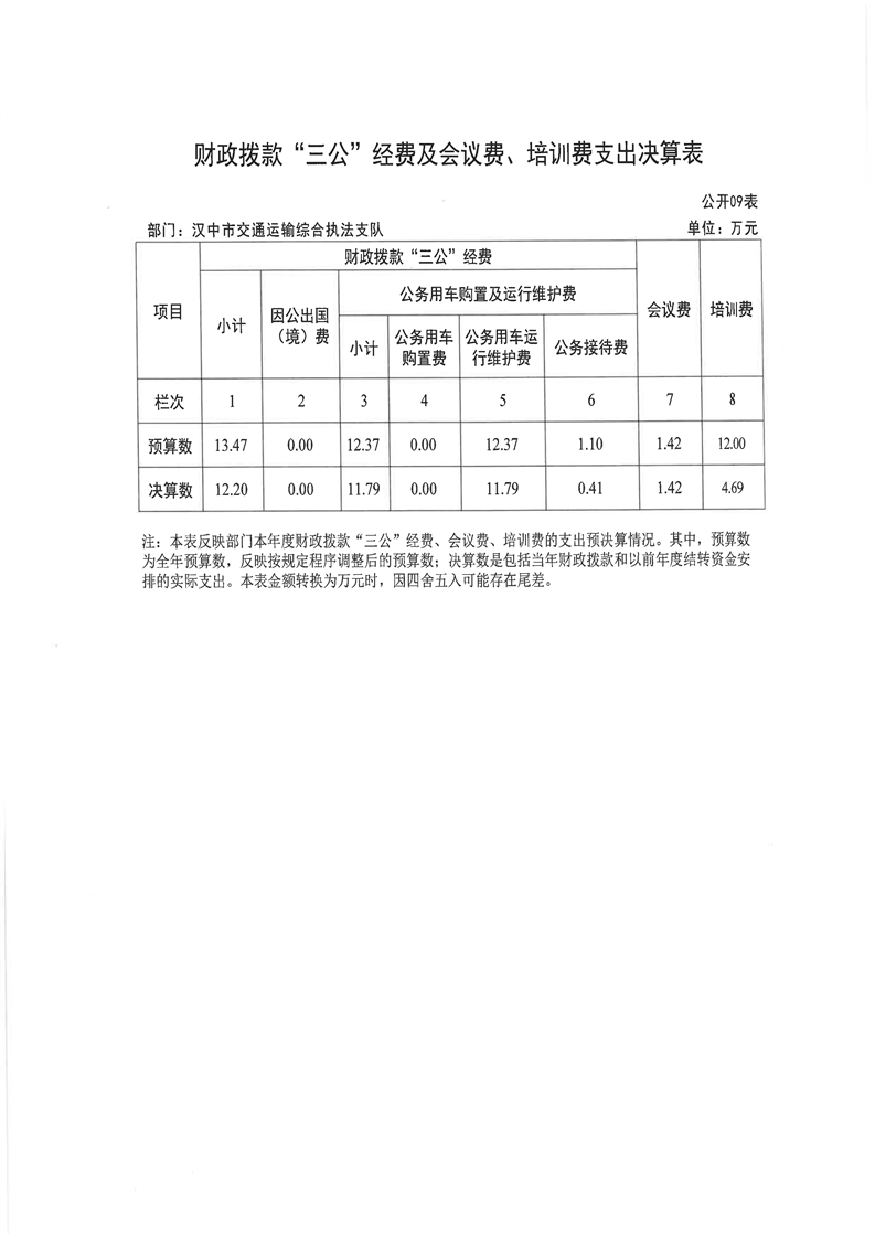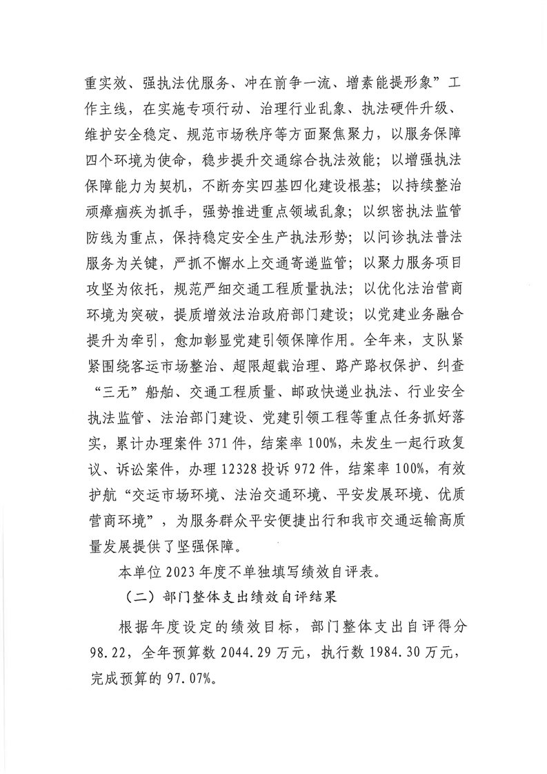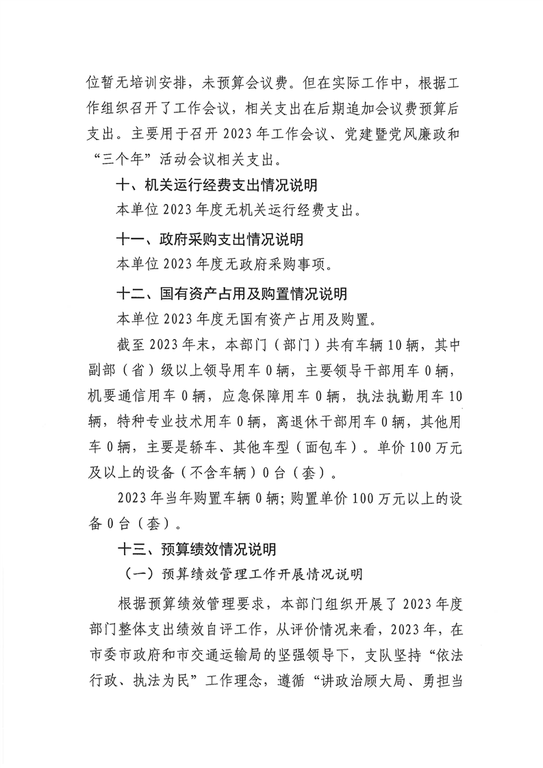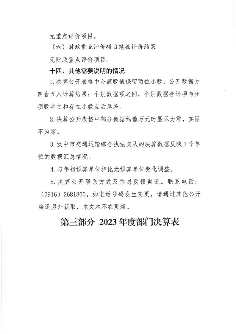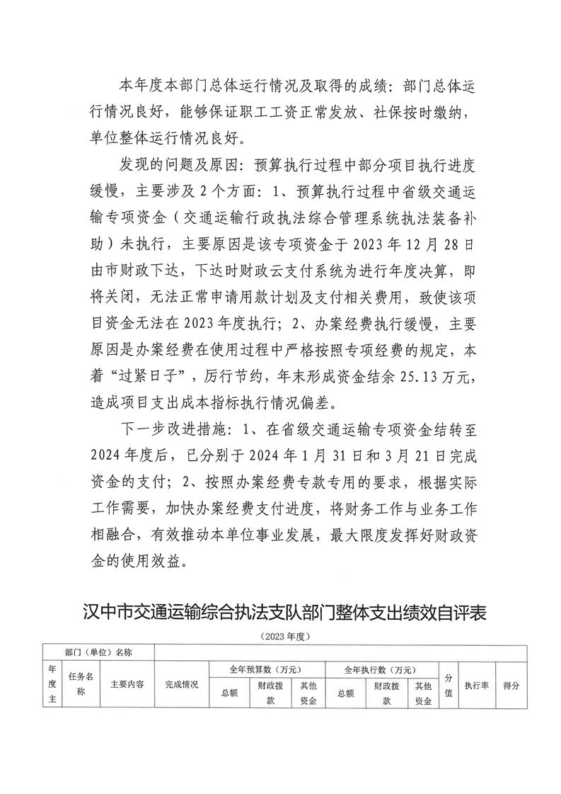 汉中市交通运输综合执法支队2023年度部门决算公开