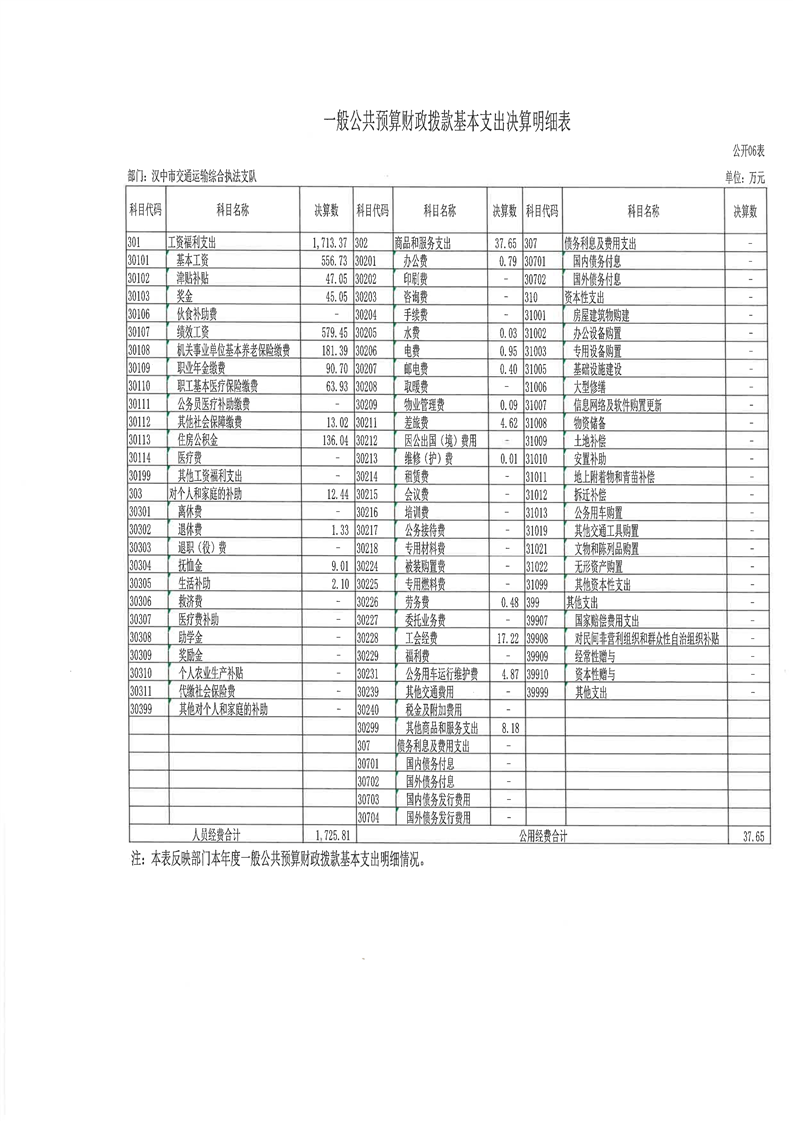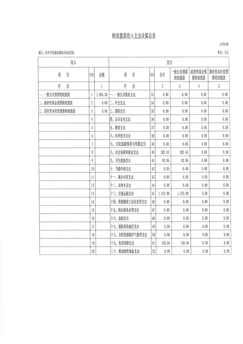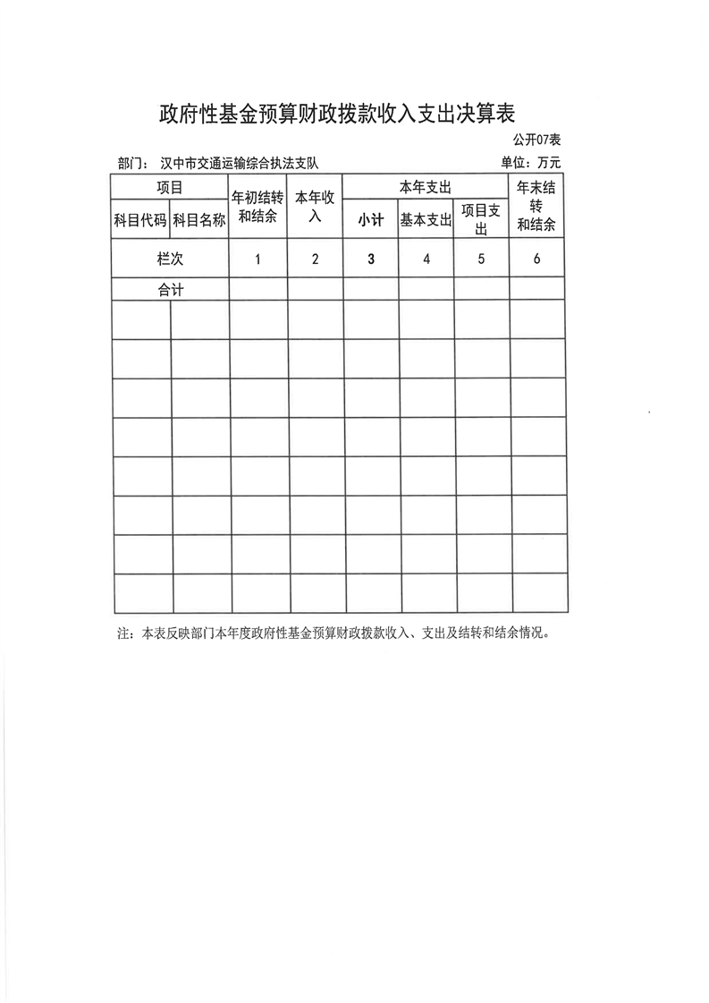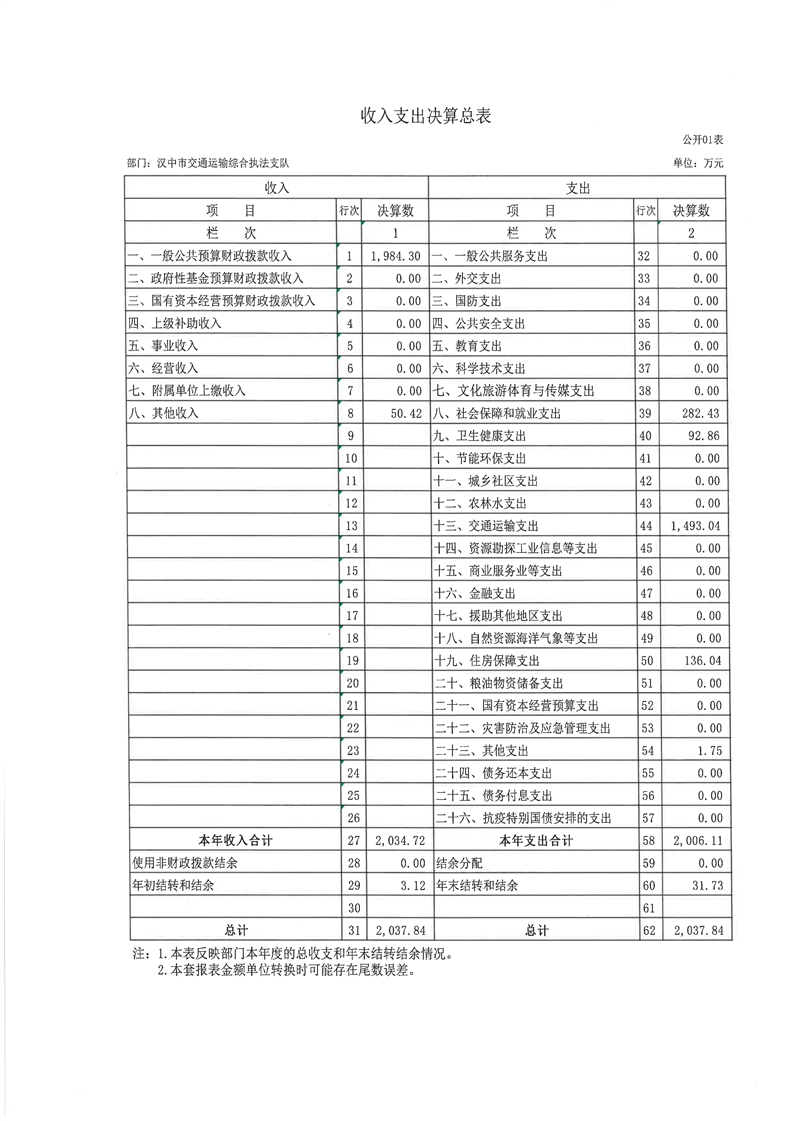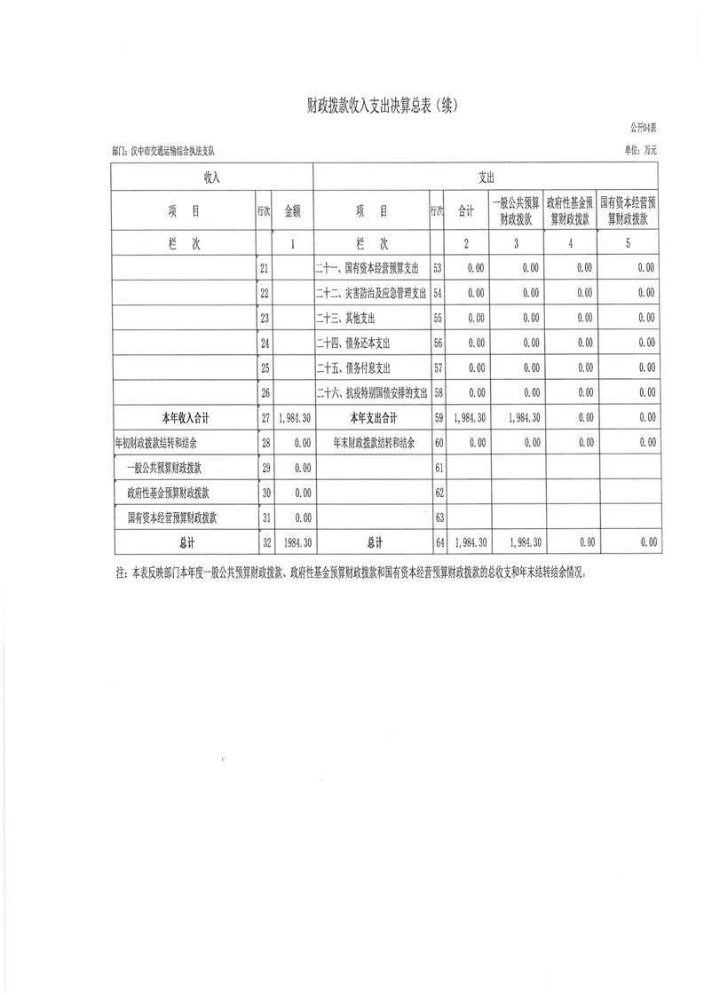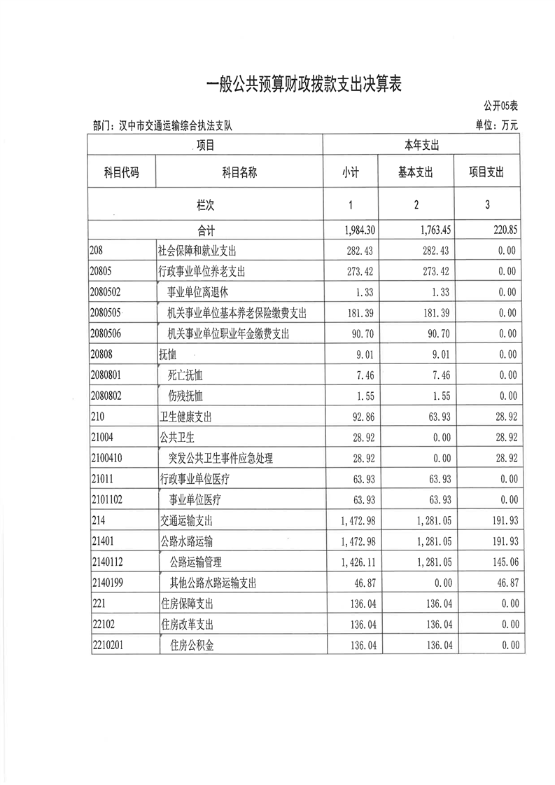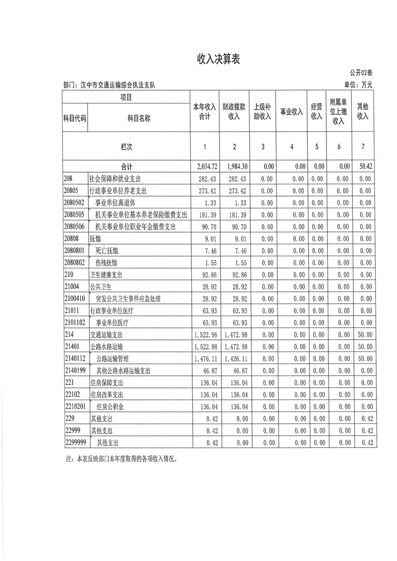 汉中市交通运输综合执法支队2023年度部门决算公开