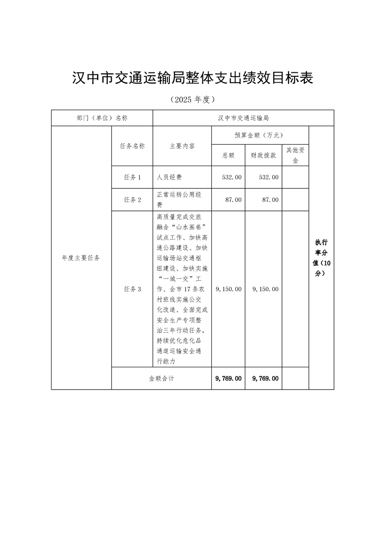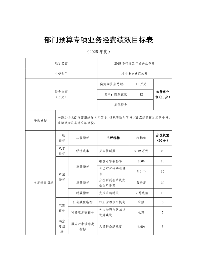 汉中市交通运输局2025年单位预算公开说明(机关)