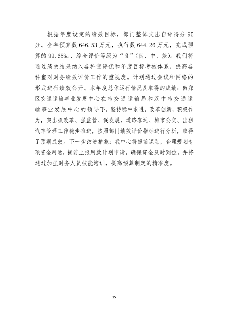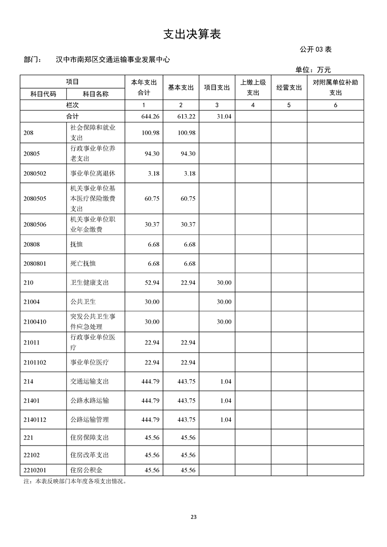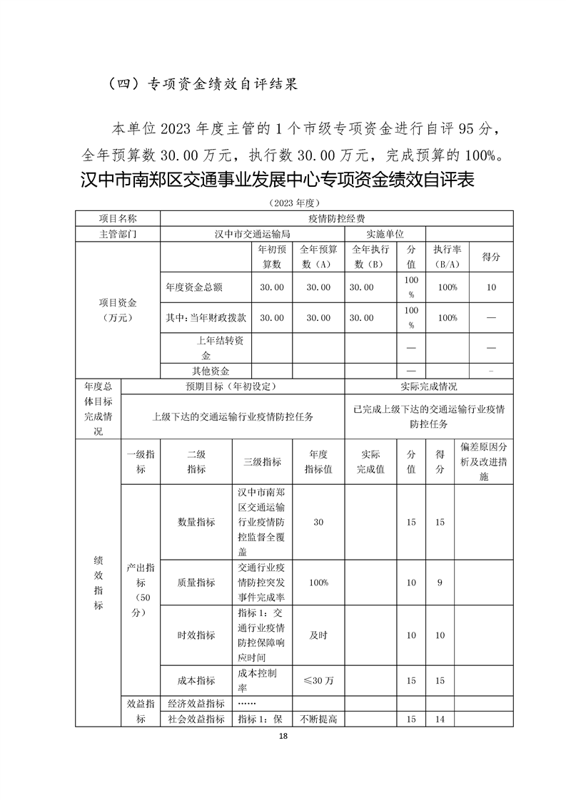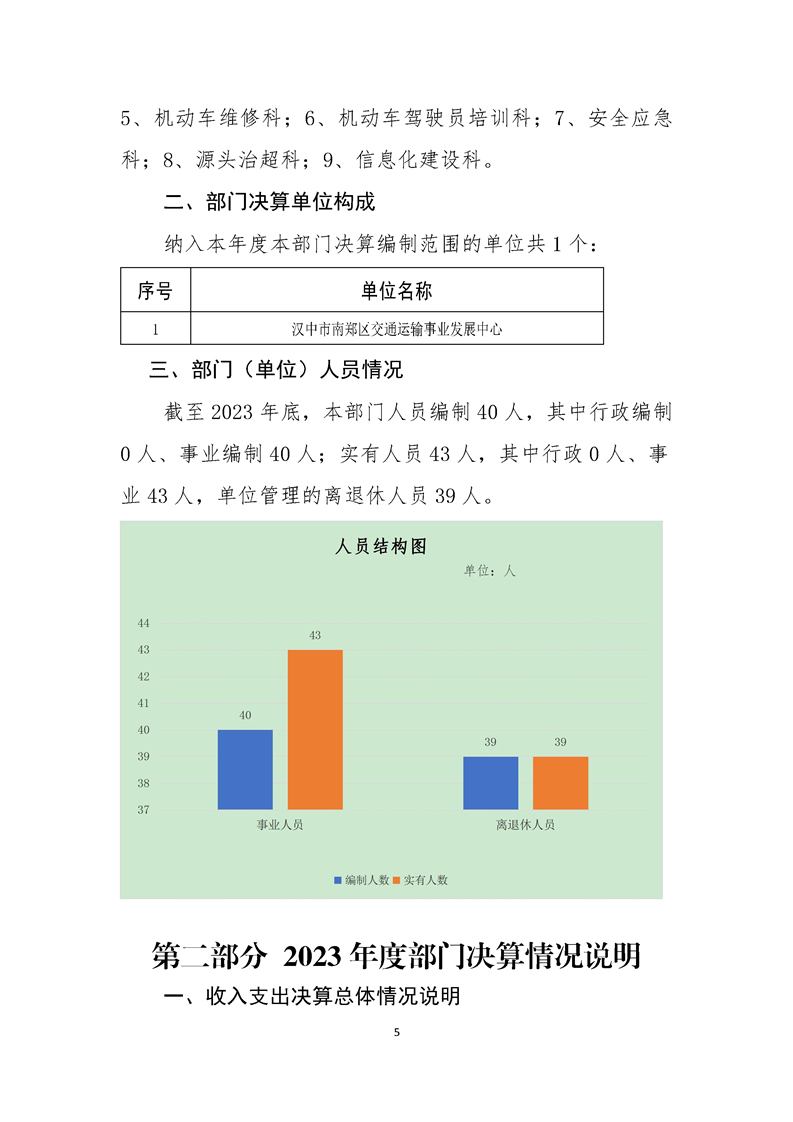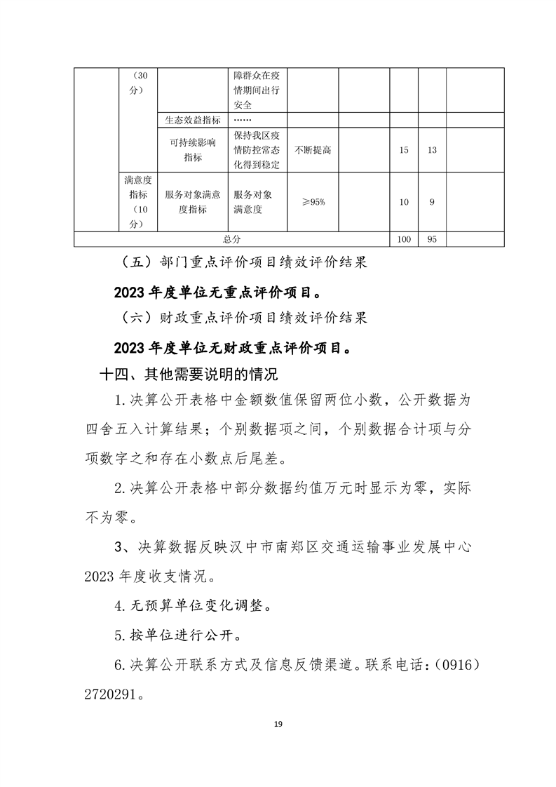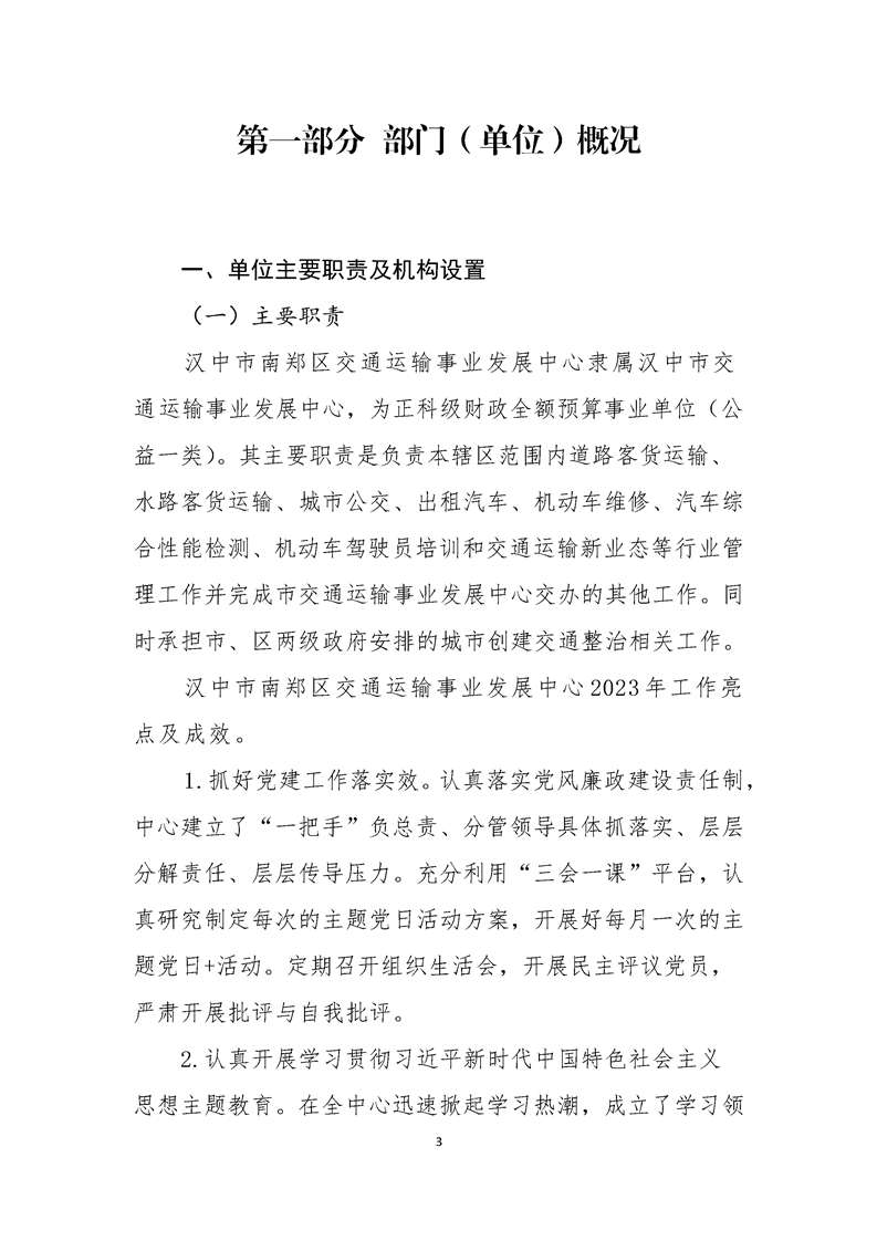 南郑交通运输事业发展中心2023年部门决算公开