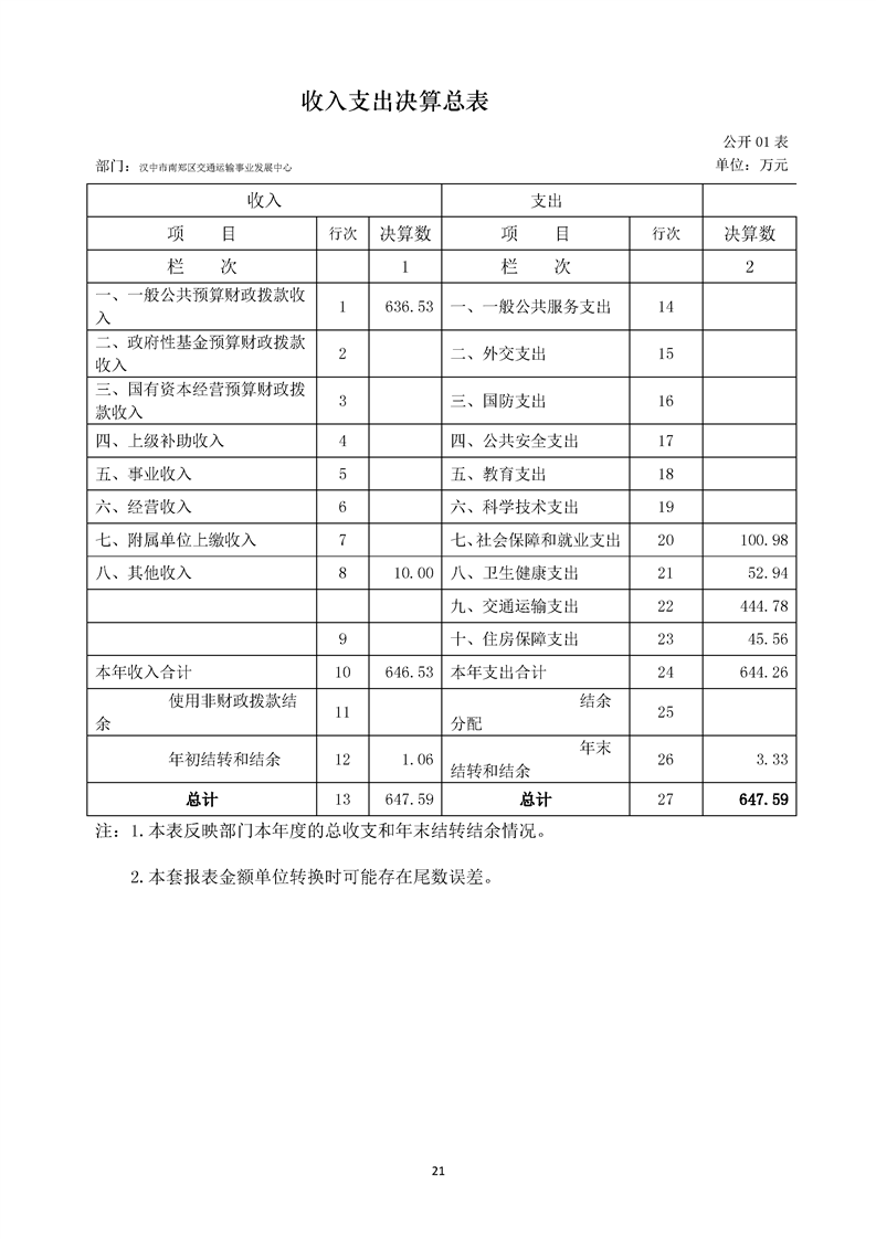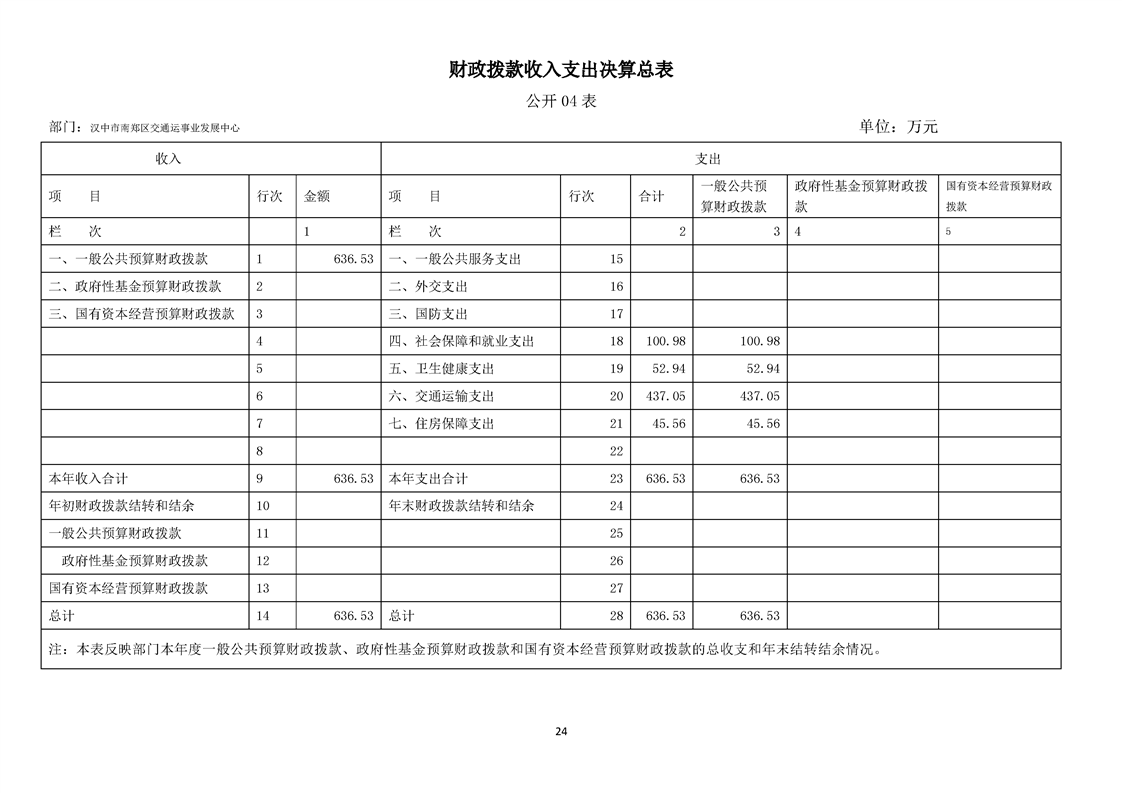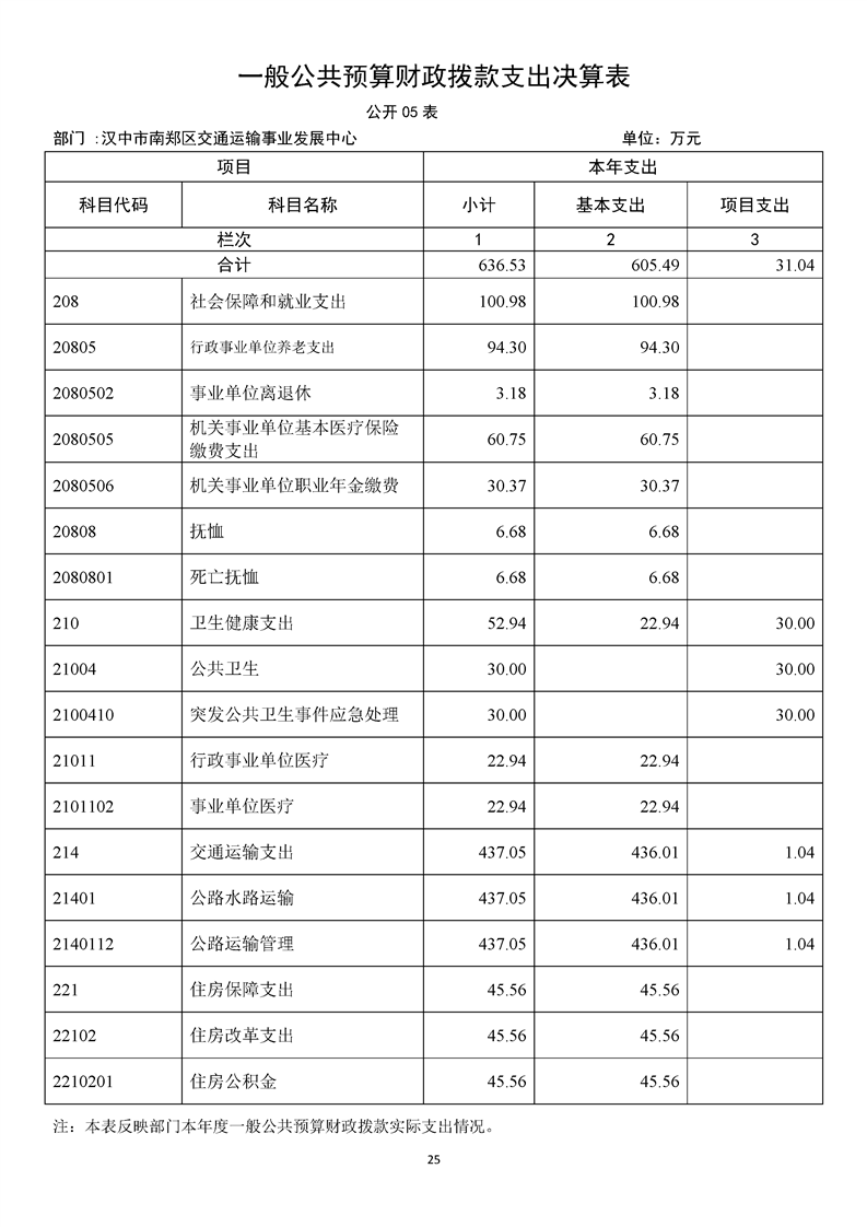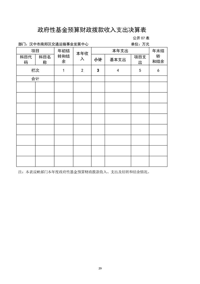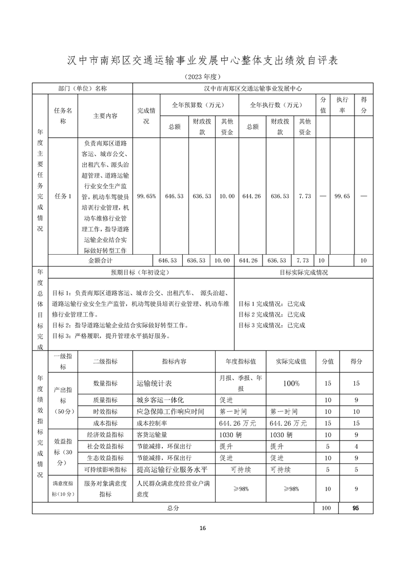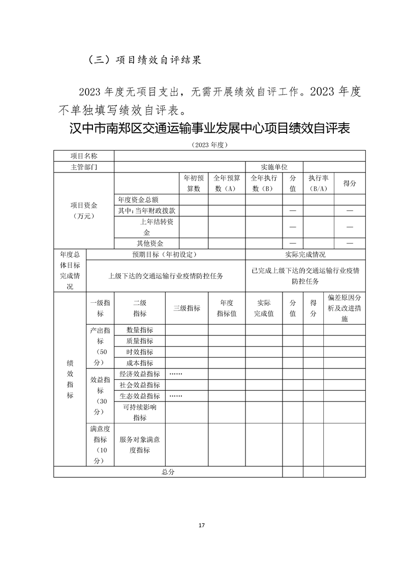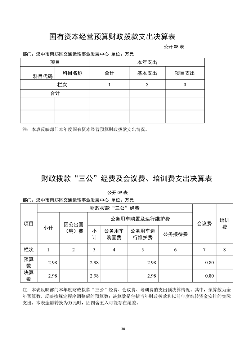 南郑交通运输事业发展中心2023年部门决算公开