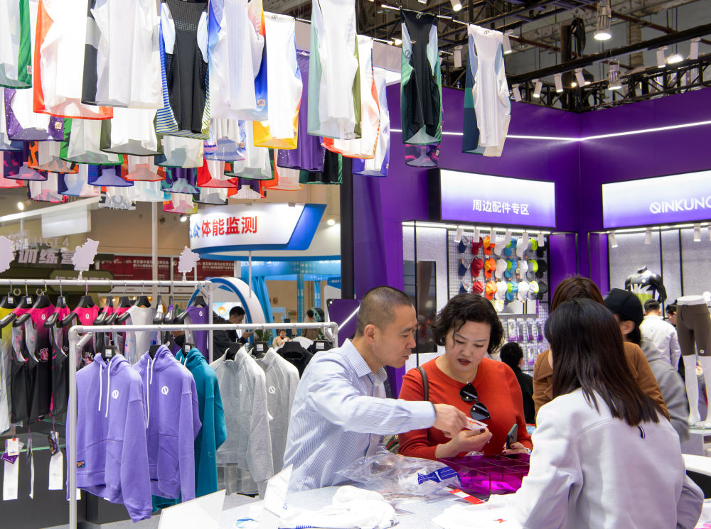 1月4日,观众在第五届中国马拉松博览会现场挑选体育运动服装。当日,为期三天的第五届中国马拉松博览会暨2024福建省路跑产业博览会在厦门国际会展中心开幕。新华社记者魏培全摄