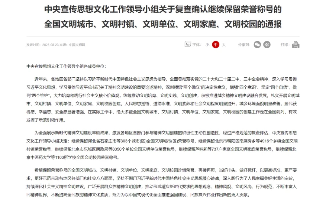 近日,中央宣传思想文化工作领导小组印发《关于复查确认继续保留荣誉称号的全国文明城市、文明村镇、文明单位、文明家庭、文明校园的通报》,经过严格规范的复查评估,汉中市公路局继续保留“全国文明单位”荣誉称号。